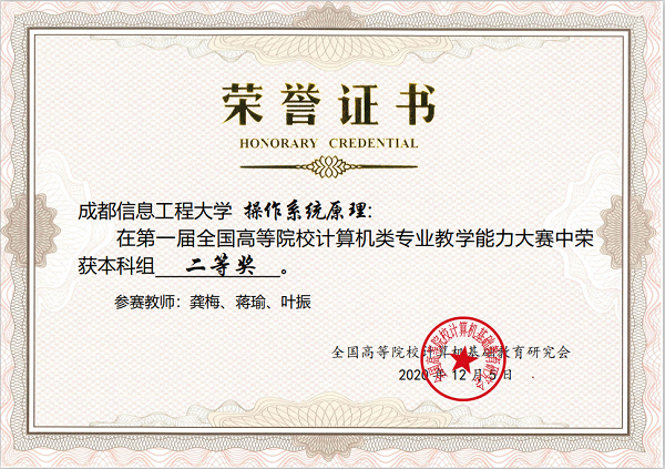 此次比赛分为本科组、高职组两个组别和初赛、决赛两个阶段。比赛重点考察教学团队针对某一课程/课程群/专业部分教学内容的教学能力。经过初赛作品评审,最终,本科组遴选出72项作品、高职组遴选出81项作品进入决赛,软件工程学院参赛作品《操作系统原理》和《C语言程序设计》成功晋级决赛。决赛阶段,各参赛团队由1人进行现场12分钟的说课演讲,评委进行现场评审。经过激烈角逐,龚梅代表团队主讲的《操作系统原理》获得本科组二等奖,铁菊红代表团队主讲的《C语言程序设计》获得三等奖。