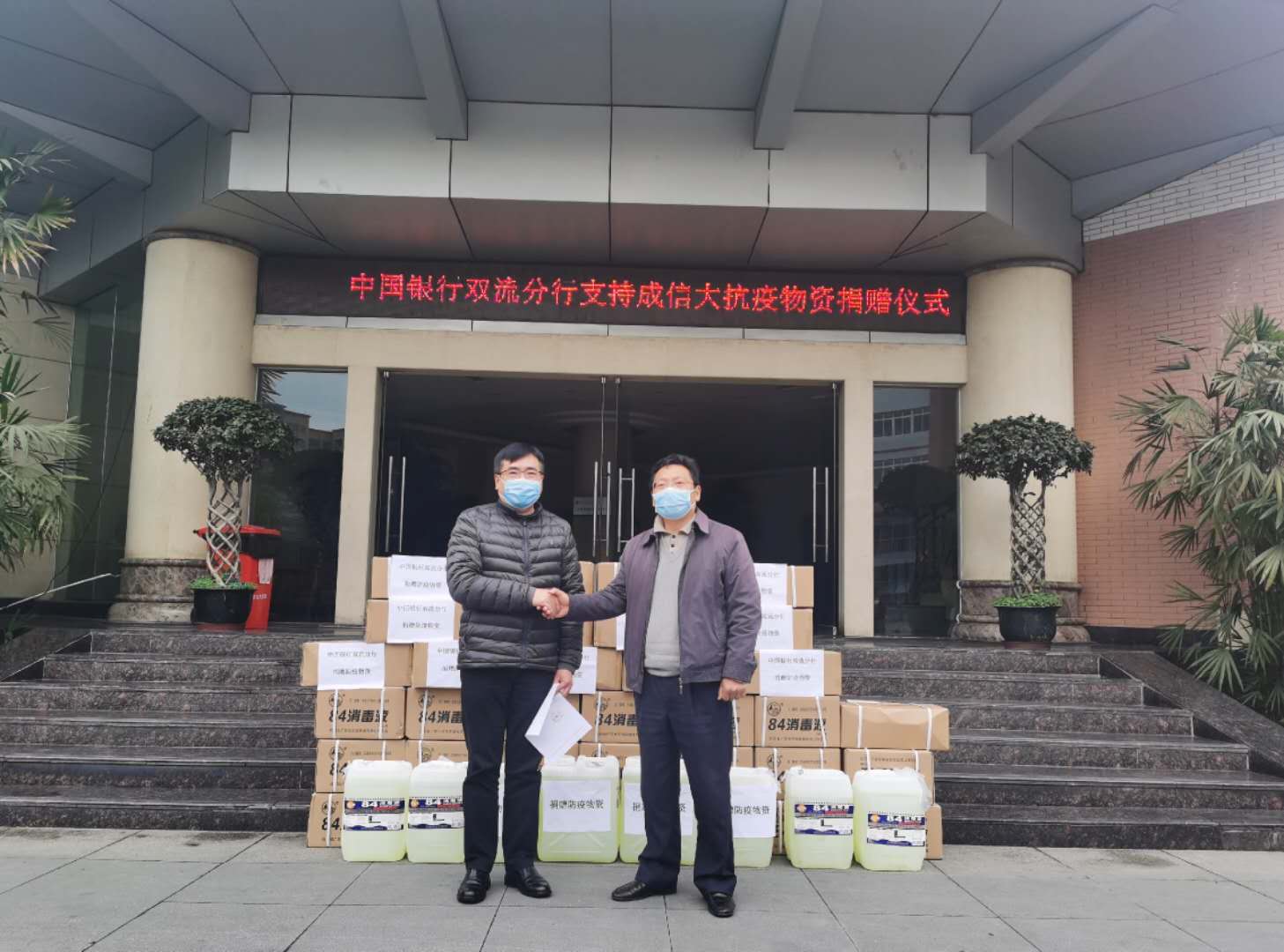 【本网讯】2月28日,中国银行双流分行向我校捐赠一批防疫物资,助力我校疫情防控工作。学校党委副书记马洪江、中国银行双流分行行长段晓辉等参加了捐赠仪式。