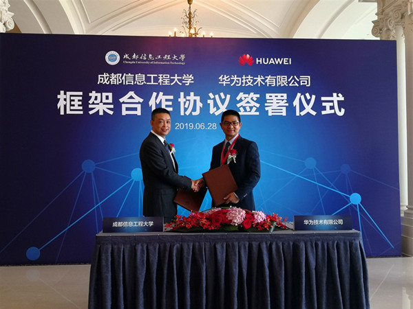 【本网讯】6月28日,学校与华为技术有限公司在深圳坂田华为总部举行合作协议签约仪式。双方将在人才培养、学科建设、智慧校园建设、气象业务等领域开展合作,协同创新,实现双方的共同发展。