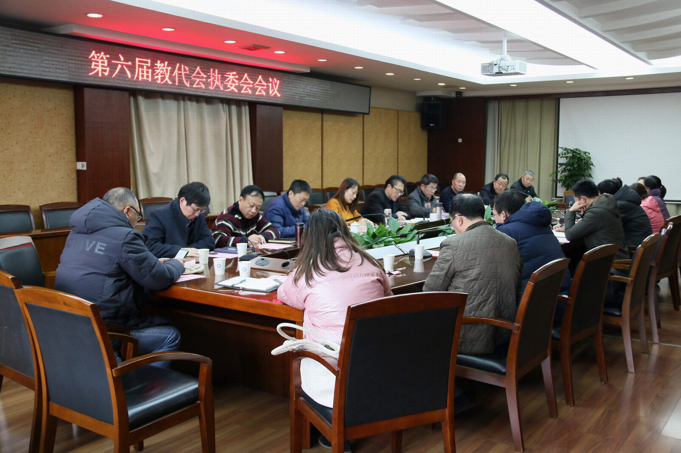 【本网讯】1月15日,学校第六届教代会执行委员会会议在航空港校区第七会议室召开。学校副校长于世祥,第六届教代会执委会委员,教代会提案委员会主任羊裔高、福利委员会主任朱毅参加了会议。会议由第六届教代会主席王天宝主持。