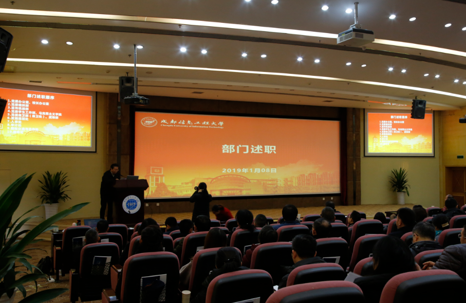 【本网讯】1月8日,学校在国际会议厅召开部门述职会议。会议由党委书记周激流主持,全体校领导,中层干部,省、市、区党代会代表、人大代表、政协委员,教代会和各民主党派主要负责人等参加会议。