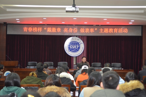 【本网讯】为亮明“青春榜样”身份,强化行为示范和责任担当,传递青春正能量,12月13日上午,学校在行政楼第一会议室首次举行青春榜样“戴徽章 亮身份 做表率”主题教育活动。学校党委副书记马洪江,宣传统战部、学生工作处、校团委负责人,各学院党总支书记(副书记),辅导员代表及“青春榜样”获奖学生代表、学生工作处相关人员参加了活动。活动由学生工作处处长戴丽红主持。