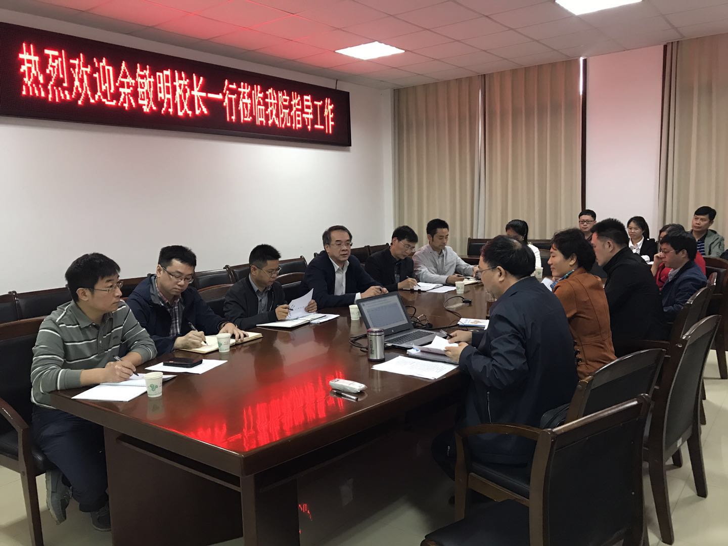 学院院长叶芝祥汇报了近几年教师科研完成的情况,科研完成的比例,学院人才培养的横纵向对比,及面临的实际平台投入等困难和问题。党总支书记李蕖汇报了学院到其他高校的调研情况,对老师们的勤奋,正视困难,积极作为表示很感动,期望学校给学院提供更多的支持。副院长徐成华和刘盛余分别汇报了学院实验条件与科研平台情况、工程认证的条件,并提出了相关的建议。