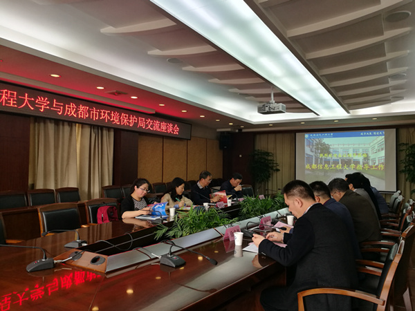 【本网讯】3月15日下午,成都市环境保护局党组成员、副局长孙勤怀,成都市环境保护科学研究院院长杨斌平、副院长谭钦文、大气所所长宋丹林一行到我校交流座谈。座谈会由学校副校长马洪江主持,招生就业处处长卢宗元,资源环境学院院长叶芝祥、副院长徐成华,科技处副处长刘敦虎、张宇,大气科学学院张小玲教授等参加会议。