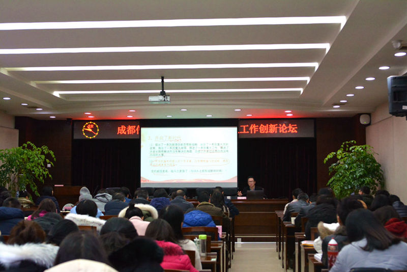 【本网讯】为深入学习贯彻党的十九大精神,贯彻落实中共中央、国务院《关于加强和改进新形势下高校思想政治工作的意见》、教育部《普通高等学校辅导员队伍建设规定》和学校2017年党建及思想政治工作会议精神,进一步推进新形势下我校学生工作,加强和改进大学生思想政治教育,创新学生工作的理论与实践,1月10日上午,学校在行政楼一会议室召开第十届学生工作创新论坛。学校副校长于世祥,相关职能部门负责人,各学院党总支书记(副书记),全体辅导员老师等约150人参加了论坛。论坛由学生工作部部长戴丽红主持。