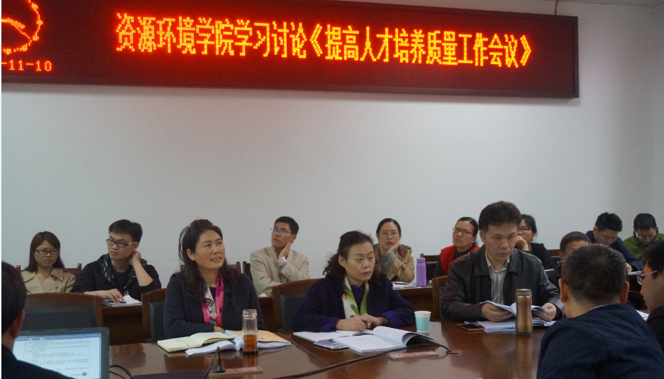 【本网讯】11月10日下午,资源环境学院在资环楼221会议室开展了关于学校提高人才培养质量工作会议讨论意见反馈会。学校副校长贺盛瑜,资源环境学院全体教职员工参加了会议。会议由资源环境学院院长叶芝祥主持。