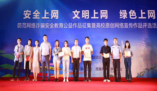 本次活动由双流区委宣传部、双流区公安分局、教育局、司法局主办,四川大学、西南民族大学及我校承办。截至8月,主办方共收到微视频、漫画等原创作品百余件。通过评审,四川大学推送的《环保小兵定格动画》、《纸飞机》、《小凳子》、《我的我们的》,西南民族大学推送的《助学金》,我校推送的《网络游戏》等6件作品获得入围奖。另外,我校推送的漫画《网络暴力》和微视频《网恋》,四川大学推送的《瓢虫小绿,地球日》获得优秀奖,将作为网络安全教育作品在全区中小学生中宣传推广。