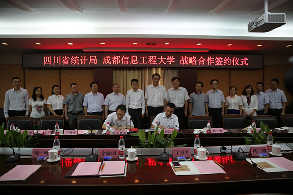 四川省统计局副巡视员王致富,设管处、人事处、大数据中心、科研所、办公室相关人员,我校党政办公室、科技处、教务处、研究生处、统计学院主要负责人和学校教师、学生代表参加了签约仪式。