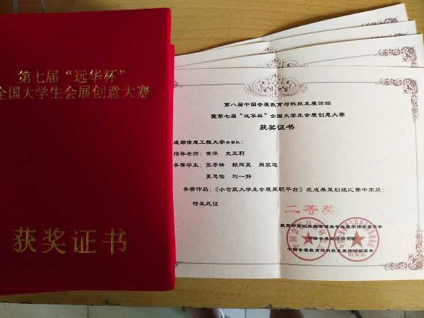 【本网讯】第七届“远华杯”全国大学生会展创意大赛于 5 月 24-27 日在广州广东工业大学举行。大赛由中国教育部高校旅游管理专业教学指导委员会、中国会展经济研究会共同主办,是会展专业级别最高的全国赛事。来自全国100多所院校109支参赛队伍进行了以“互联互通、竞优融合”为主题的会展创意大赛比拼。我校管理学院会展经济与管理专业学生经过校内选拔,派出四个组别分别参加了会展创意类策划和会展成果类策划两个单项的比赛,经过激烈角逐,从109支队伍中脱颖而出,在本次全国比赛中摘得一个一等奖,一个二等奖,两个三等奖。