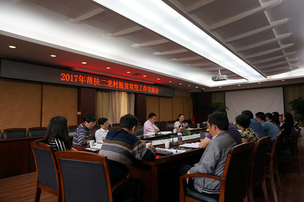 【本网讯】2017年,我校定点扶贫地区——达州市通川区将脱贫摘帽,结对帮扶贫困村——安云乡二龙村也将完成脱贫任务。为安排部署学校2017年帮扶二龙村脱贫攻坚工作,实现“真扶贫,扶真贫,精准扶贫”工作目标,使脱贫攻坚工作做实做细,5月10日下午,学校召开2017年帮扶二龙村脱贫攻坚工作交流会。学校副校长贺盛瑜,各党总支书记、科技处副处长刘敦虎及相关人员参加了会议。会议由贺盛瑜主持。