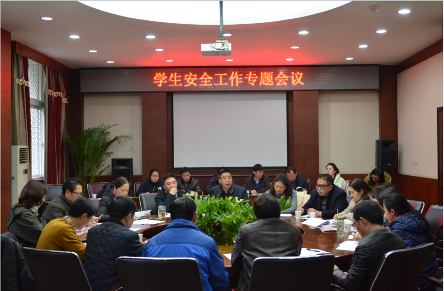 【本网讯】1月16日下午,学校在行政楼第六会议室召开学生安全工作专题会议。学校副校长于世祥,宣传统战部、学生工作处、教务处、保卫处、后勤管理处、校团委负责人,各学院党总支书记、副书记等参加了会议。会议由学生工作处处长戴丽红主持。