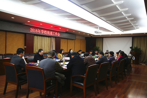 【本网讯】12月29日上午,学校在航空港校区第七会议室召开年度统战工作会,传达学习中央统战部、教育部关于加强新形势下高校统战工作的主要精神,回顾总结2016年度学校统战工作,部署2017年度统战工作任务。学校党委书记赖廷谦、党委副书记敬枫蓉,党政办、组织部,统战部主要负责人和各党总支书记(副书记),各民主党派和知联会主要负责人参加了会议。会议由敬枫蓉主持。