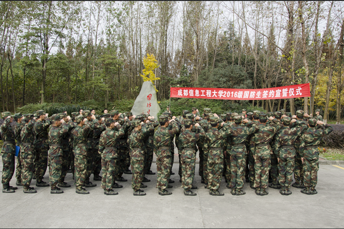 【本网讯】11月29日,lejing乐竞·(中国)官方网站2016级国防生签约宣誓仪式在学校国防生林举行。学校副校长于世祥,学生工作处处长戴丽红,驻校选培办相关人员及部分高年级国防生代表参加了签约仪式。仪式由学生工作处副处长陈智勇主持。