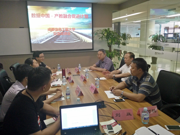 为了深入了解项目实施,务实推进校企合作,2016年7月26日,副校长何建新教授、软件工程学院舒红平教授、赵卓宁教授等相关人员,前往位于北京中关村软件园的曙光公司考察调研“数据中国-产教融合促进计划”,会见了曙光教育合作中心王蒙娜总经理、胡隽副总经理和古明珉市场总监等公司领导和专家。参观了中科曙光企业科技展厅,共同回顾了曙光公司长期专注于服务器领域的研发、生产与应用的历史。校企双方交流后认为,在气象、制造业、医药等领域,尤其是依托行业大数据平台,结合应用场景,凭借高性能计算的优异性能,发挥高校行业领域的专业和科研优势,推动大数据应用创新和人才培养,双方契合点多,合作潜力大。