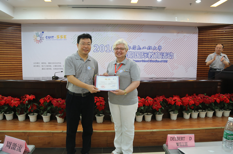 【本网讯】2016年7月13日,学校首届暑期国际教育活动(2016 summer school education of CUIT)在学术报告厅拉开序幕。来自美国、日本、意大利、加拿大、法国、塞尔维亚等国的8名授课专家与学校313名卓越计划专业学生齐聚一堂,共同开启此次活动。校长周激流出席启动仪式,致开幕辞并为授课专家颁发聘书。教务处、国际交流与合作处、宣传统战部、学生工作处、校团委等职能部门负责人,电子工程学院、计算机学院、信息安全工程学院、软件工程学院、通信工程学院、光电技术学院、控制工程学院、资源环境学院等8个学院负责人参加启动仪式,启动仪式由学校副校长何建新主持。