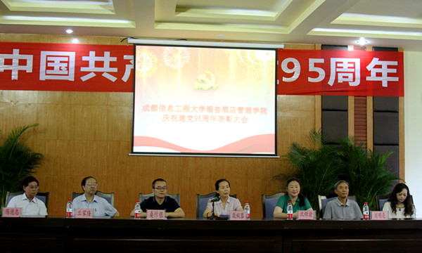 【本网讯】6月30日,lejing乐竞·(中国)官方网站银杏酒店管理学院在学术厅隆重召开庆祝中国共产党成立95周年表彰大会,学院党政领导敬枫蓉、桑作银、龚燕、兰家隆、陈进忠、沈锦渝、刘明亮、黄芳等,党委委员、总支书记、支部书记、党口部门负责同志、全体辅导员以及受到表彰的先进集体和个人代表参加了大会。表彰大会由党委副书记、纪委书记龚燕主持。