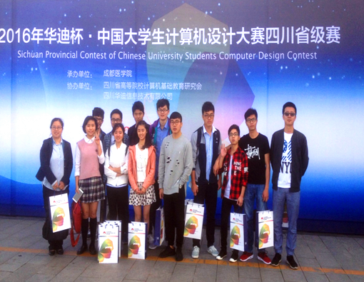 【本网讯】5月15日,2016年华迪杯·中国大学生计算机设计大赛四川省级赛在成都医学院拉开帷幕。此次大赛由来自四川大学、电子科技大学等全省27所高校的172支团队近500名学生参赛。由我校计算中心组织的6支队伍参加了此次角逐,并最终获得了一等奖一项、二等奖四项和三等奖一项的优异成绩。同时,我校作为参赛单位获得大赛的“优秀组织奖”。
