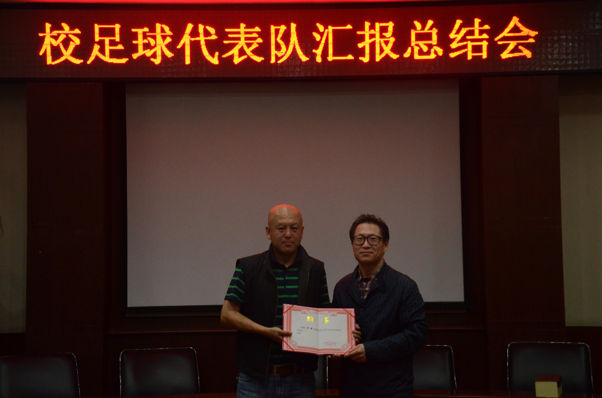 在汇报总结会上,足球代表队主教练马志杰详细汇报了本次比赛的情况,以及备战7月将在南京举行的全国总决赛的计划。体育部聘请原四川全兴足球队队员裴强为代表队技术指导,并颁发了聘书。