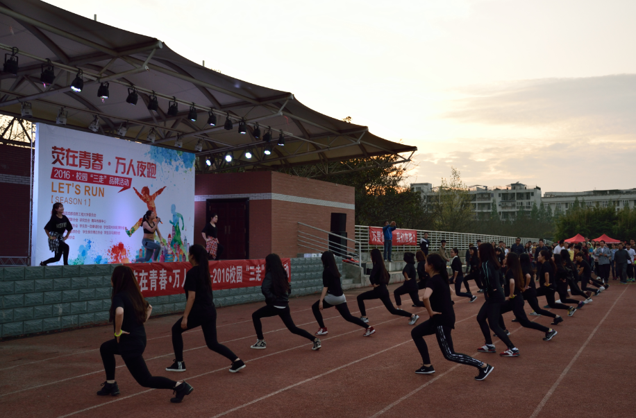 在健身教练的示范下,现场全体师生进行了跑前热身运动。起跑指令发出后,大家在于世祥的带领下,穿戴各种荧光道具开始了校内环线夜跑。同学们不停地挥舞着荧光棒,喊着整齐口号,充满青春的激情与力量,把整个龙泉校区变成了一个运动的欢乐世界。
