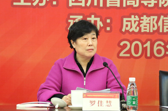 本次会议分为两个阶段,第一阶段总结研究会2015年工作和优秀论文颁奖阶段,由四川省高等院校党建理论研究会副会长兼秘书长、四川大学党委常务副书记罗中枢同志主持;第二阶段即大会交流发言阶段,由四川省高等院校党建理论研究会副会长、电子科技大学党委副书记、纪委书记罗佳慧同志主持。
