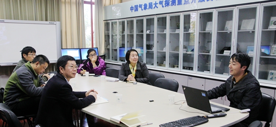 【本网讯】 11月19日,中国气象局科技司科研院所处丁顺清、中国气象局气象干部培训学院赵亚楠一行对我校局校合作项目的执行情况及产生效益进行调研,调研会由科技处处长董一平主持,校长助理、大气科学学院院长范广洲教授、电子工程学院副院长马尚昌教授参加调研会。