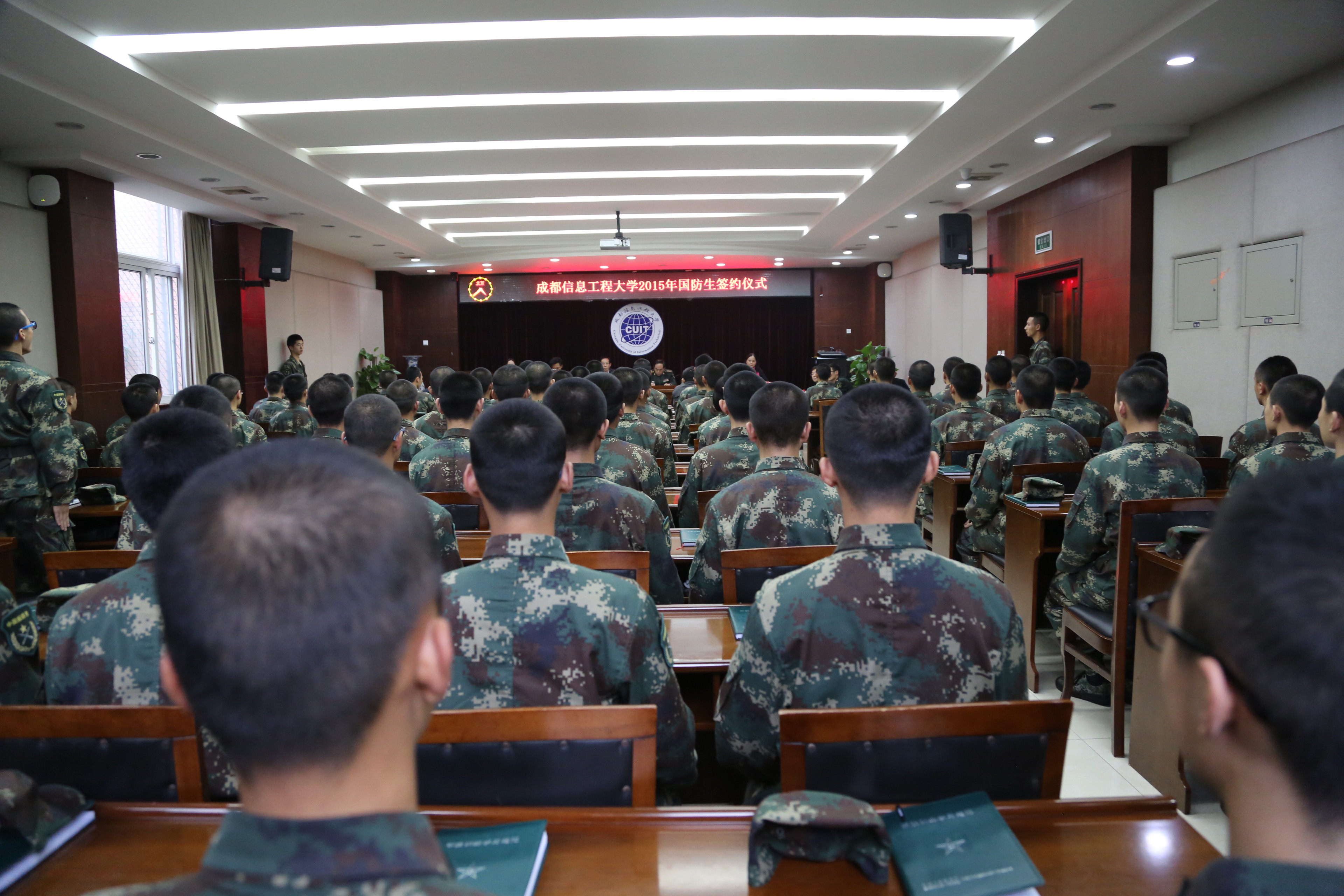 国防生代表向校方和军方递交了《国防生培养协议书》,2015年全体招收选拔国防生面对国旗庄严宣誓。