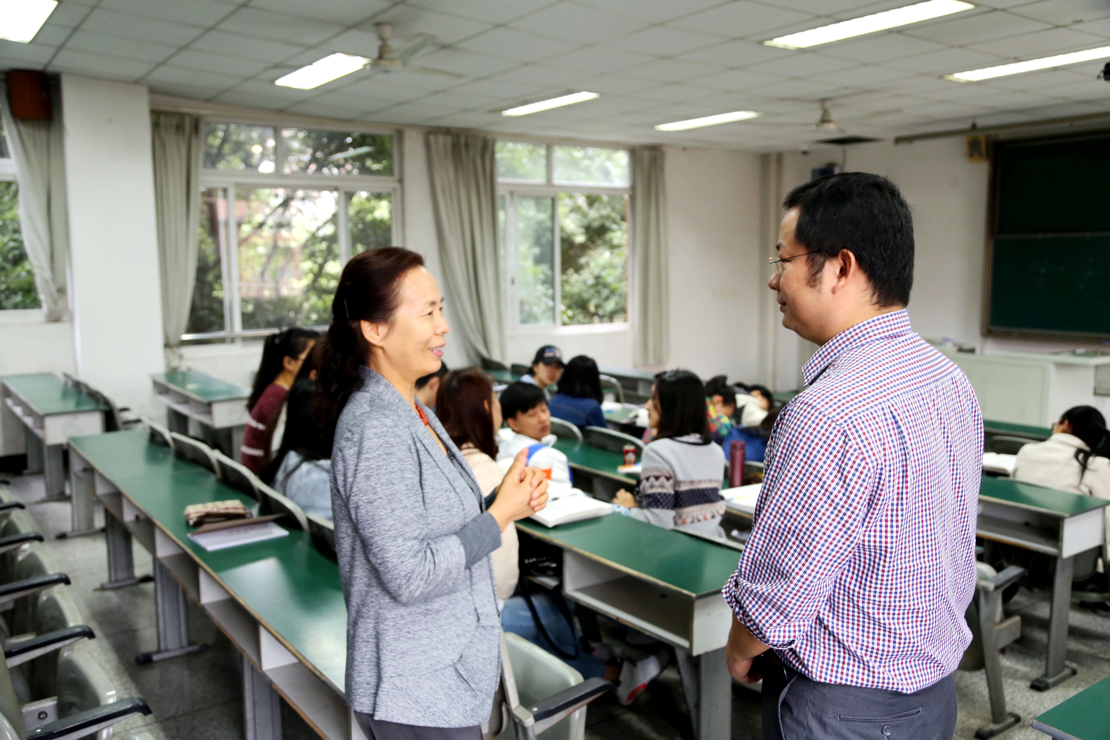 敬枫蓉与学生一起听课