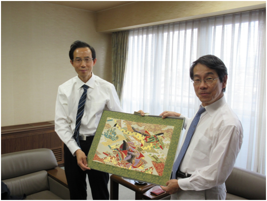代表团首先访问了立命馆大学,受到学校法人立命馆副总长、学校副校长渡边公三的热情欢迎。座谈会上,代表团回顾了两校友好交流往来的历史,2006年我校共28人参加了在立命馆大学举办的“大学管理运营干部特别研修班“,完成了为期21天的培训;2008年立命馆大学国际部长山井敏章一行来我校访问交流;2008年四川汶川大地震后立命馆大学给我校发来慰问电。回顾过去的交流,展望未来的合作,渡边公三对立命馆大学的学科、专业做了详细的介绍,并特别介绍了学校的十九个独立的研究所,希望两校加强合作,并真诚欢迎我校相同专业领域的教授们到立命馆大学做研究、欢迎我校领导和教师们到立命馆大学指导。参加交流座谈会议的还有立命馆大学国际合作室副室长驹见一善、信息理工学院副院长RUCK THAWONMAS、国际合作课员早边沙织等。
