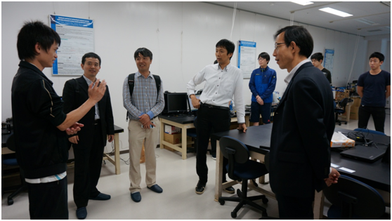 代表团还参观了千叶大学工学研究科的系统控制研究室,观看了学生综合应用各种控制理论和实验平台开展的创新性实验成果展示及详细讲解。在混杂动态系统控制方面,学生们搭建了基于机器人追逐控制的实验系统,建立了机器人小车的混杂动态自动驾驶模型;搭建了两套不同的实验系统,分别实现了实时数据部分丢失情况下的网络化控制和量子化反馈的稳定性控制。千叶大学为学生提供的先进、完备的实验条件,提高学生利用实验平台实现各种复杂控制理论的综合应用能力。