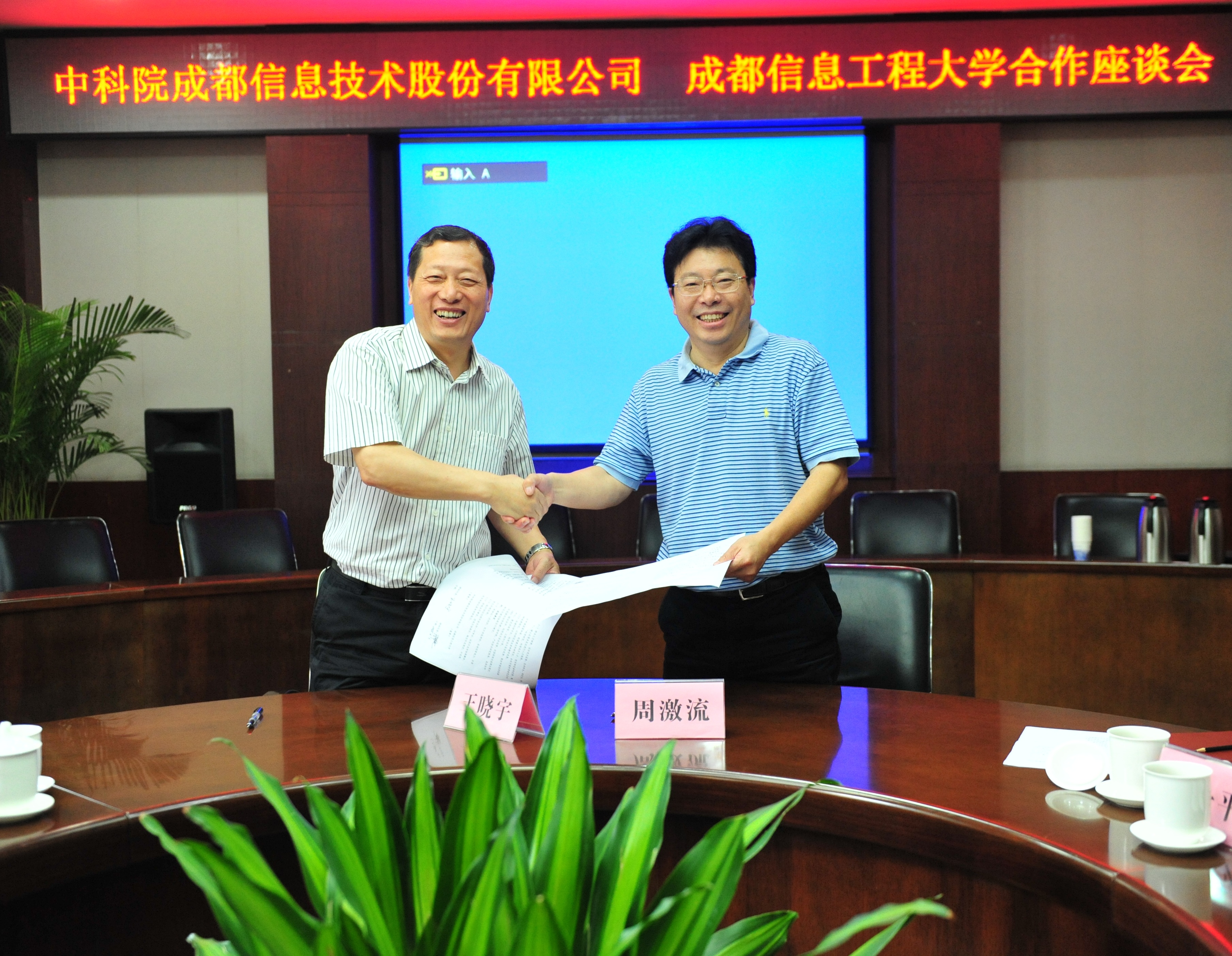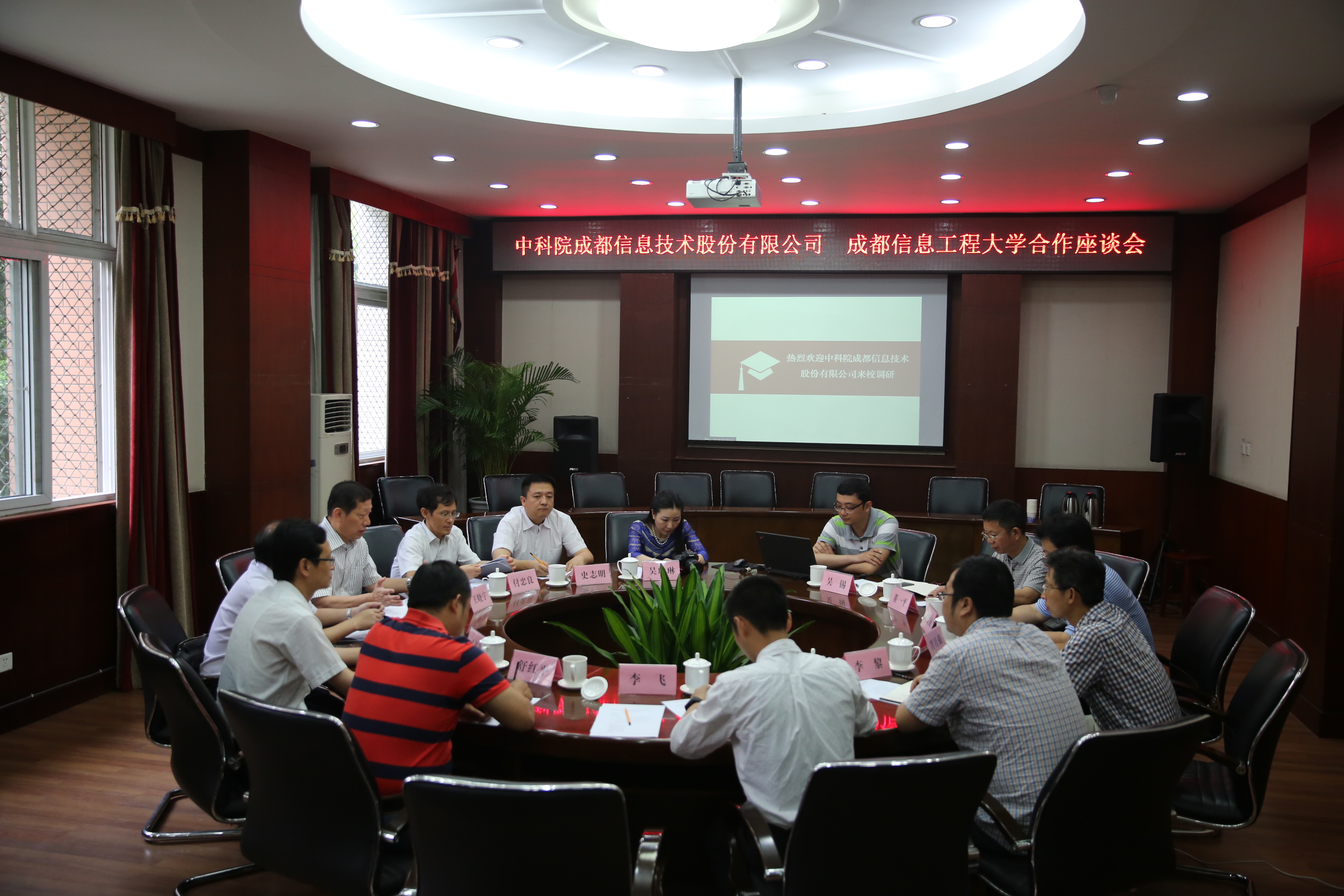 【本网讯】6月3日上午,中科院成都信息技术股份有限公司董事长王晓宇一行6人来我校洽谈联合人才培养、科学研究、共建科研平台、联合办学等校企合作相关事宜。学校校长周激流、党政办主任肖月强及科技处、招就处、研究生处、计算机学院、信息安全工程学院、软件工程学院负责人参加了洽谈座谈会。座谈会由周激流主持。