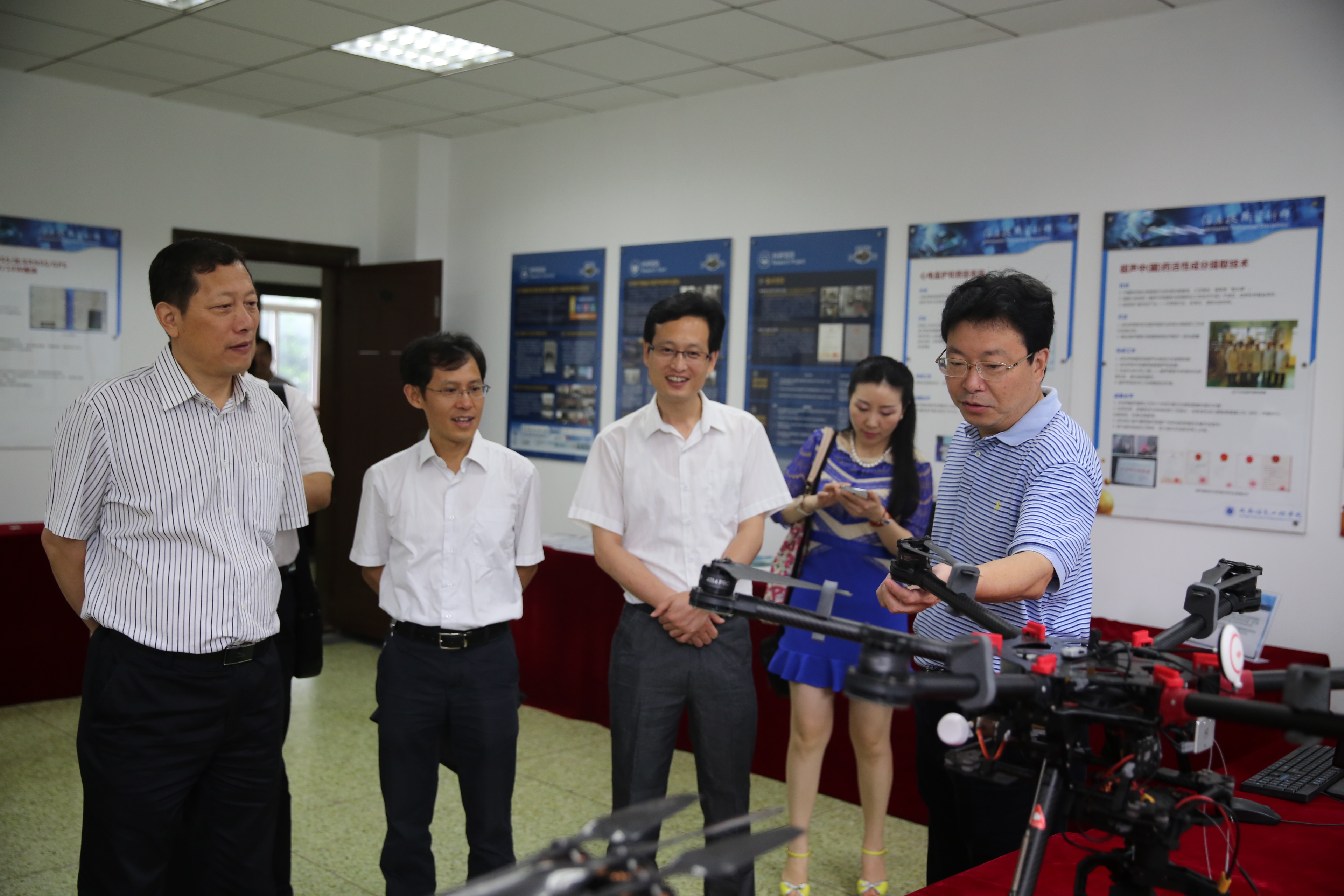 王晓宇一行参观了我校信息学科群展厅,并对学校的科研力量、管理水平以及取得的科技成果给予了高度赞赏。