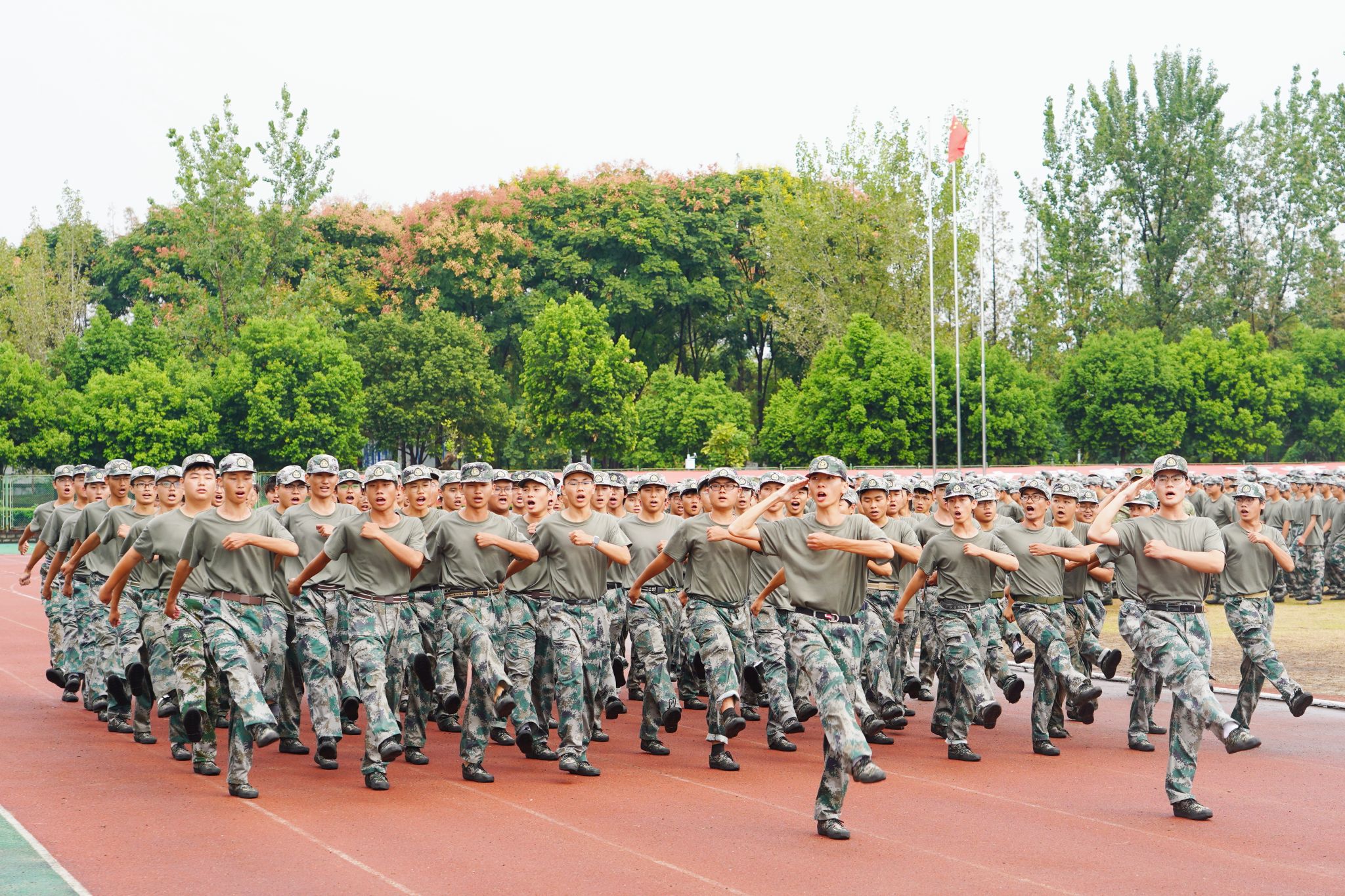 现场举行了升国旗仪式,在激昂的国歌声中,全体起立,2024级参训学生身姿挺拔,向冉冉升起的国旗行注目礼。汇报表演伴随着《分列式进行曲》拉开帷幕。2024级同学们步伐整齐、口号嘹亮、精神饱满地经过检阅台。