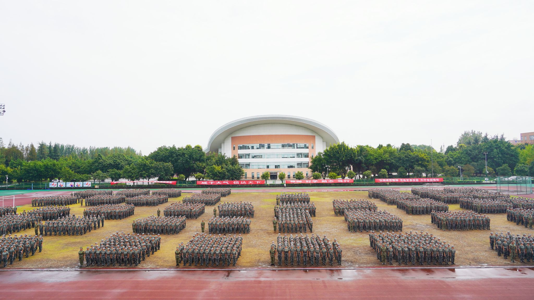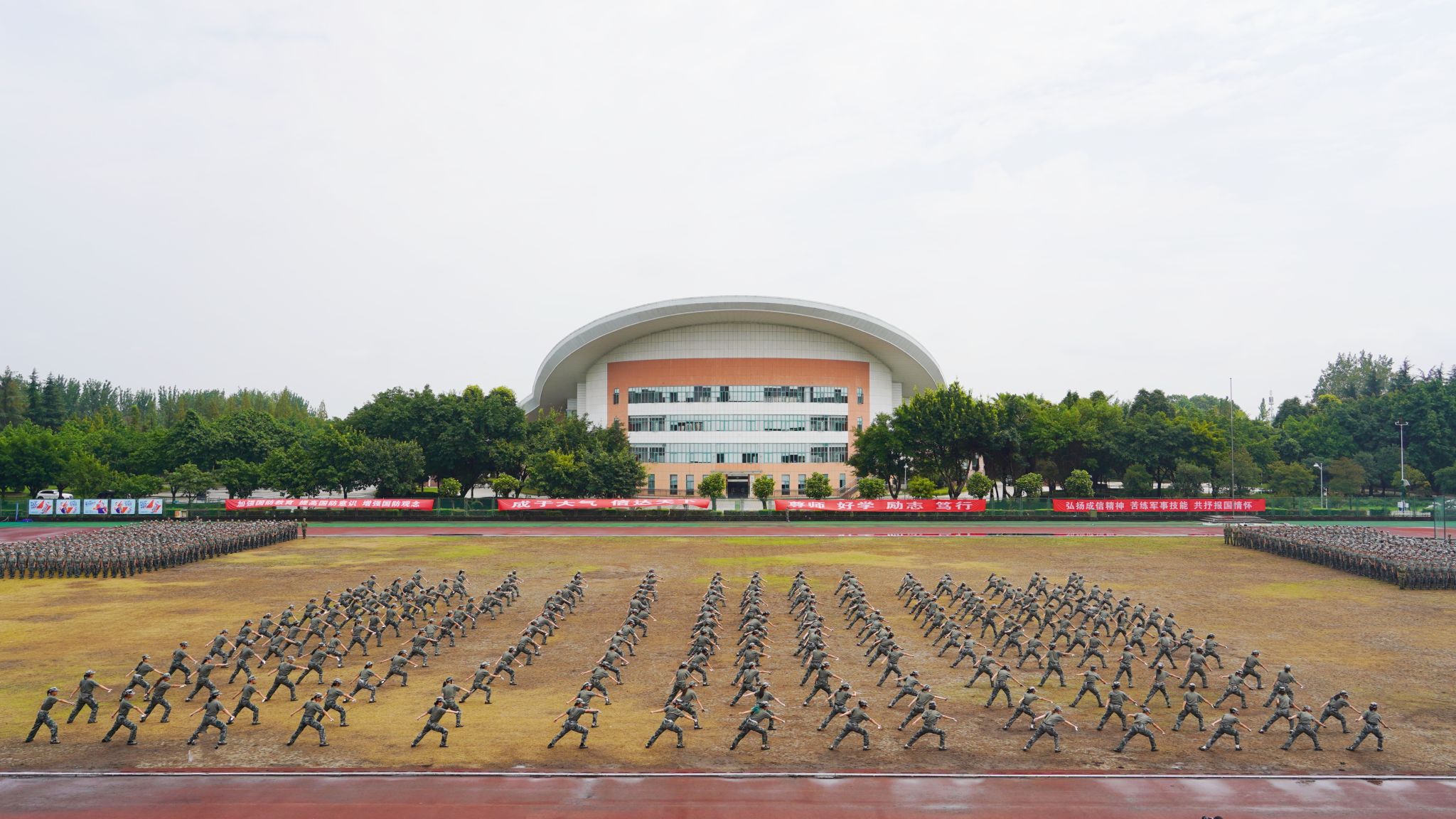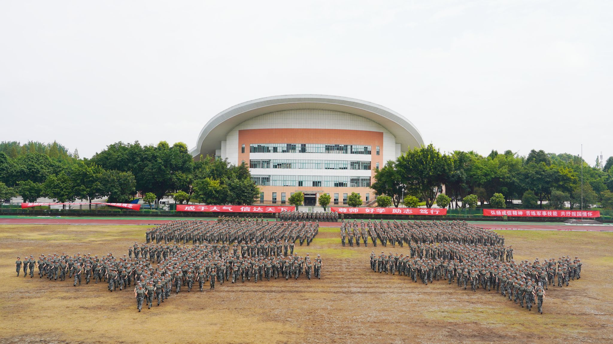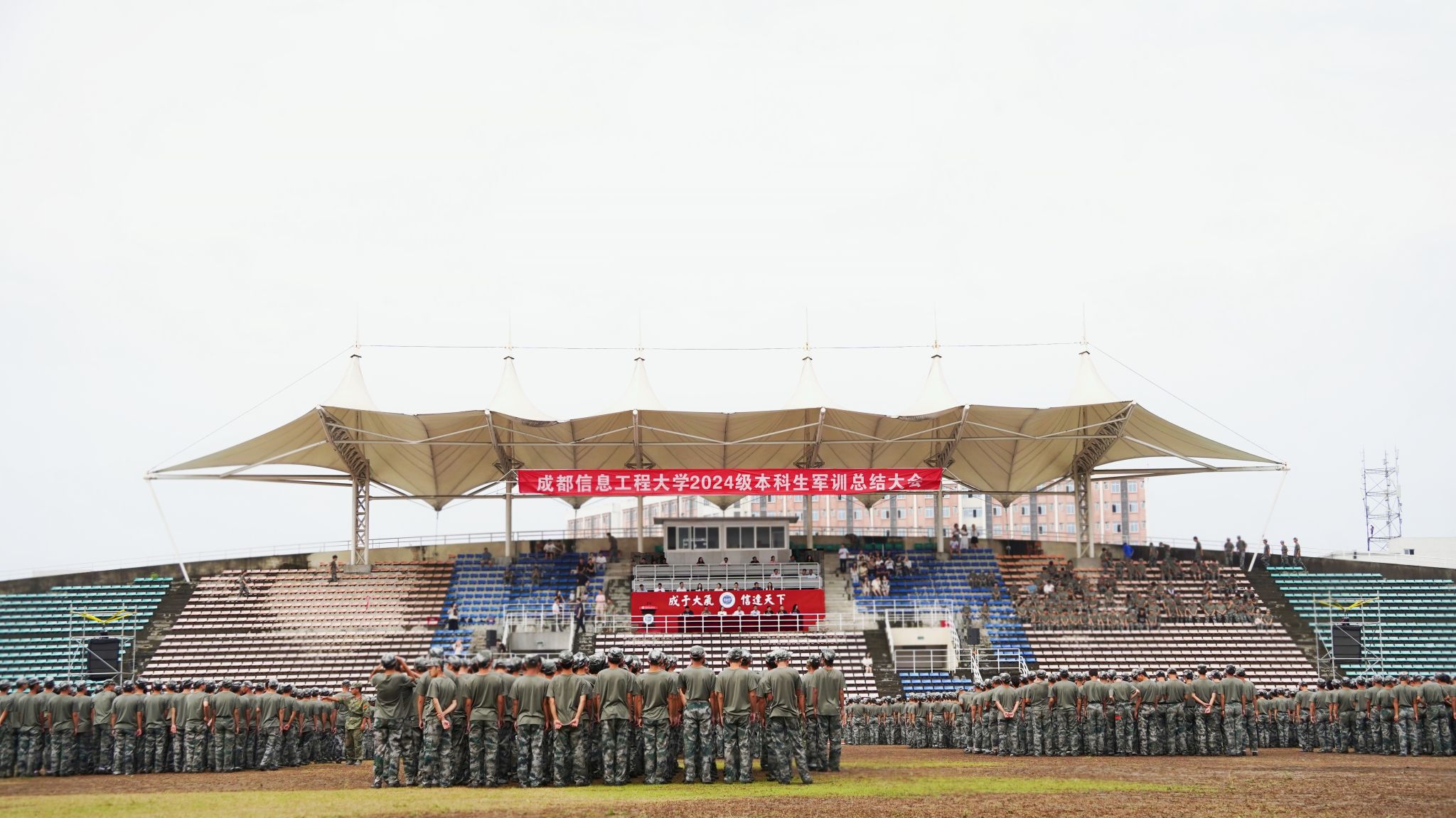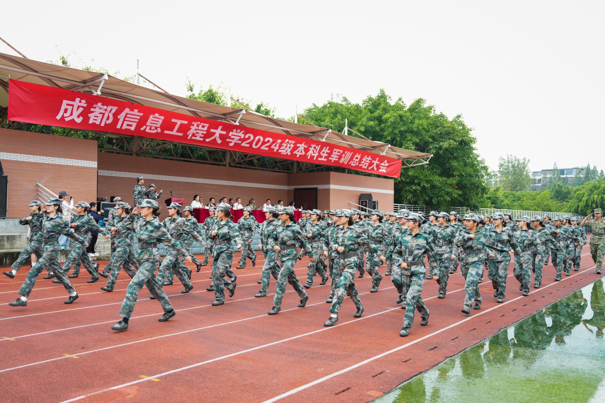 陈权亮和熊建分别在航空港校区与龙泉校区作总结讲话。他们代表学校向承训单位全体教官表示崇高的敬意,向投身军训工作的老师表示感谢,祝贺同学们圆满完成军事技能训练。他们希望同学们牢记校训精神,胸怀责任担当,做热爱祖国、热爱学校的成信人;继续发扬踏实的作风和务实的态度,弘扬“尊师、好学、励志、笃行”的学风,做脚踏实地、刻苦钻研的成信人;坚持运动,养成强身健体的良好锻炼习惯,做英姿飒爽、青春飞扬的成信人。他们勉励学子们珍惜韶华、追求梦想、勇于奋斗,用青春书写无愧于时代、无愧于历史的华彩篇章,为实现中华民族伟大复兴贡献磅礴的青春力量!追梦奋斗正当时,奋楫扬帆再出发。