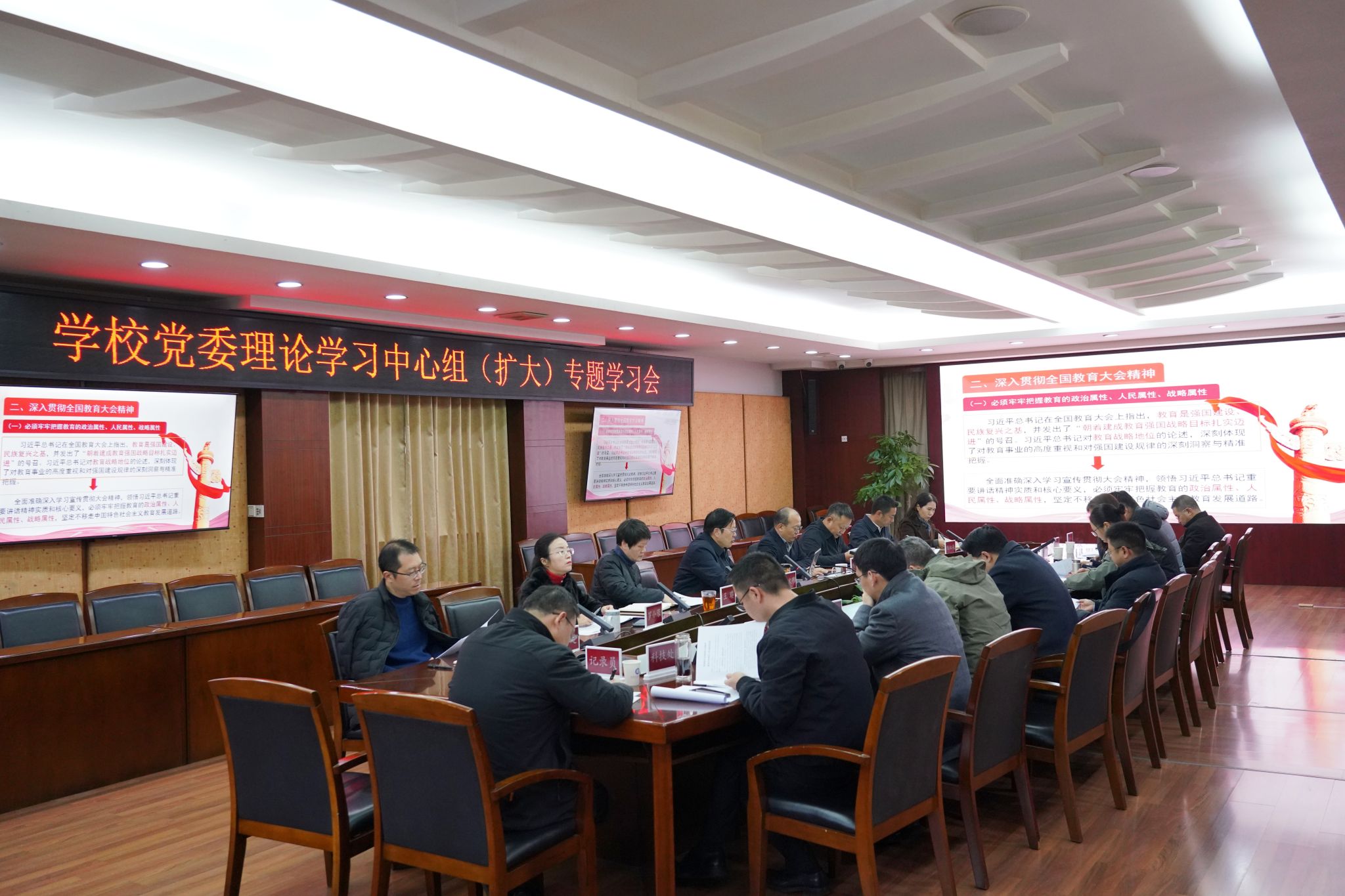 【本网讯】12月24日,学校党委理论学习中心组(扩大)举行贯彻落实全国教育大会精神专题学习会。党委书记沈火明主持会议并谈认识体会。他强调,校内各单位要把思想和行动统一到习近平总书记重要讲话精神和党中央决策部署上来,锻造好落实立德树人根本任务的关键课程,推动教育科技人才一体发展,加强高素质专业化教师队伍建设,扩大国际学术交流和教育科研合作,以钉钉子精神推动各项工作部署落地见效,为扎实推动教育强国、教育强省建设贡献成信大力量。