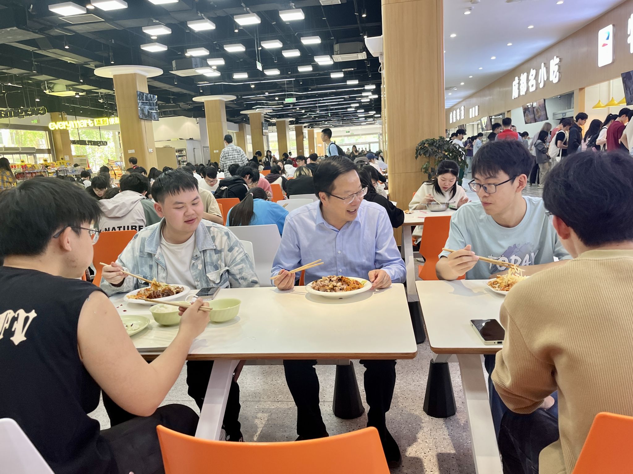 沈火明与学生一起就餐