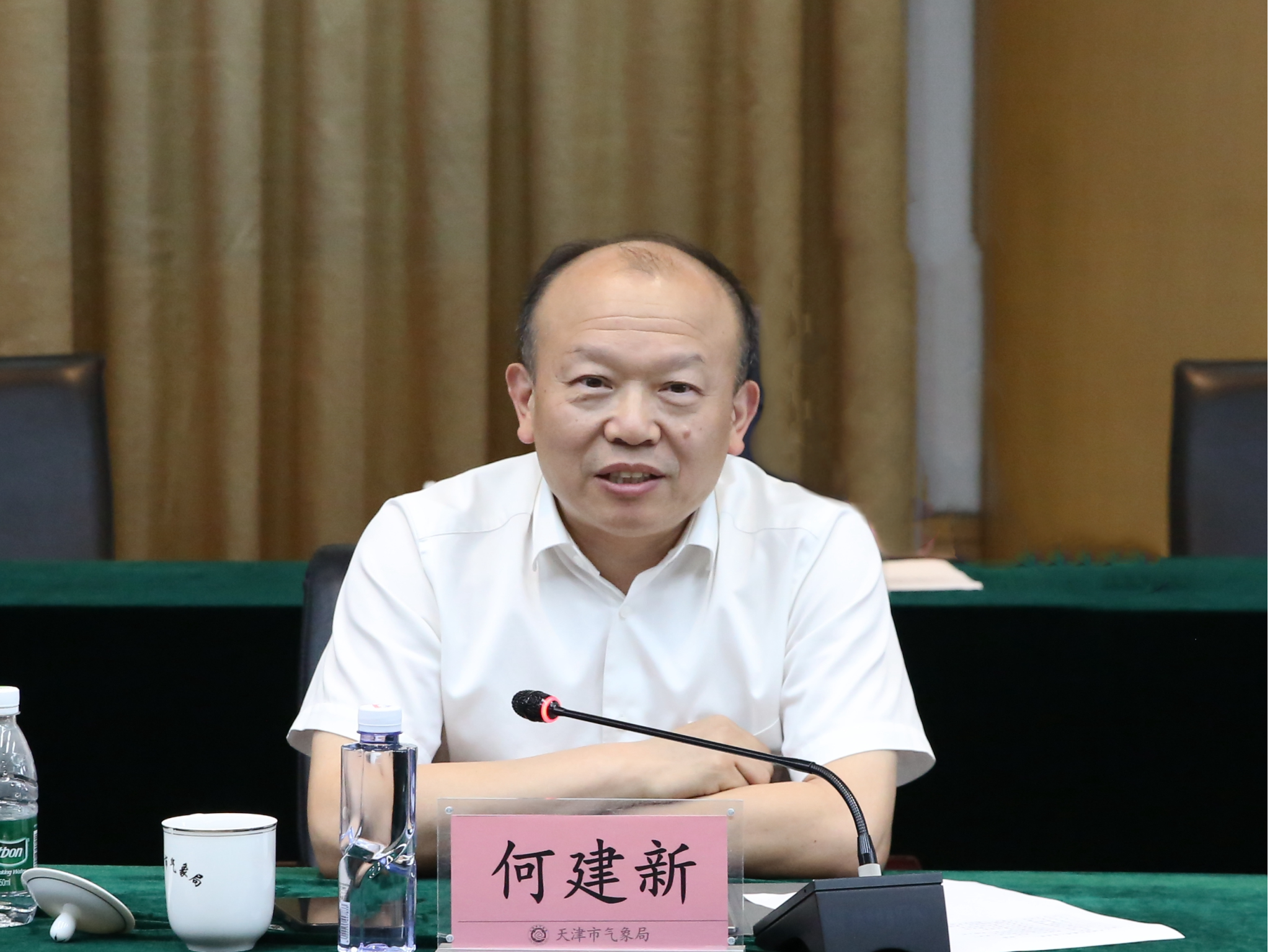 何建新向天津市气象局长期以来对学校的关心与支持致以诚挚的谢意。他介绍了学校在人才培养、学科建设、科学研究方面的情况。他表示,学校将全力推进与天津市气象局深度合作,构建全方位合作体系,选派优秀学子及科研骨干参与学习和项目,聘任专家联合指导学生,双方将深化科研对接,共同打造创新平台,推动科技成果转化。他期望双方业务部门加强沟通协作,寻找更多契合点,助力天津气象事业的进一步发展。