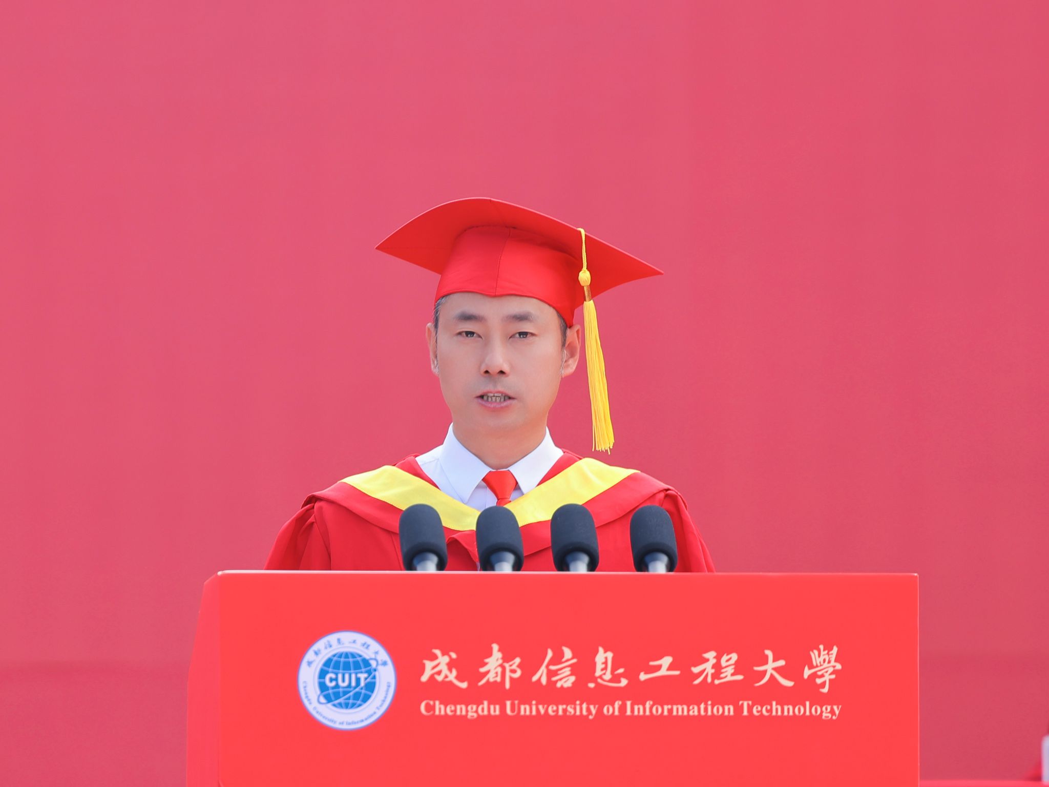 何建新在讲话中对全体毕业生寄予了三点希望,一是以定力为锚,在风雨洗礼中淬炼精神筋骨。定力是信仰与意志的熔铸,是“蓝图绘到底”的执着,“任尔风动”的从容,心火不灭的执着,暗夜秉烛的孤勇。愿你们涵养精神定力,在时代浪潮中锚定人生坐标。二是以自信为帆,在时代变局中开拓创新境界。高扬自信的风帆,在技术的洪流中勇往直前,既锚定学科深耕的“主航道”,更敢于在未知海域开辟“新坐标”。三是以笃行为楫,在文明长河中书写成信答案。将所学所思带入广阔天地,在行动中扎根、在服务中成长,在社会第一线写下属于自己的答案。