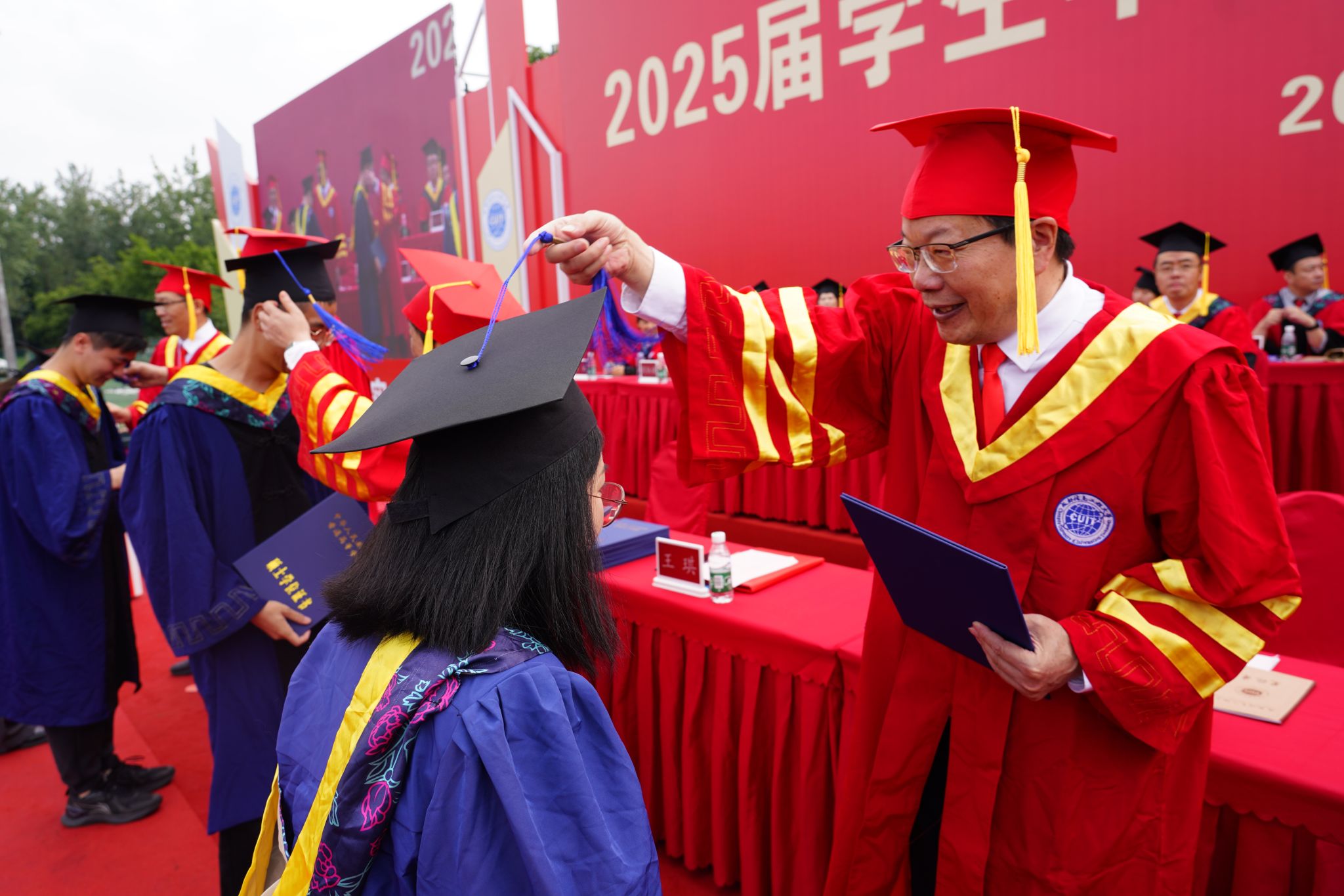 在全体师生热情洋溢地合唱校歌《有我担当》中,2025 届学生毕业典礼暨学位授予仪式圆满结束。母校期待毕业生们在时代的浪潮中做破浪的弄潮儿,在历史的星河里当璀璨的追光者,以高尚的道德情操、扎实的专业素养、昂扬的精神风貌,在各自的领域中发光发热,融入实现中华民族伟大复兴的中国梦的壮阔航程。