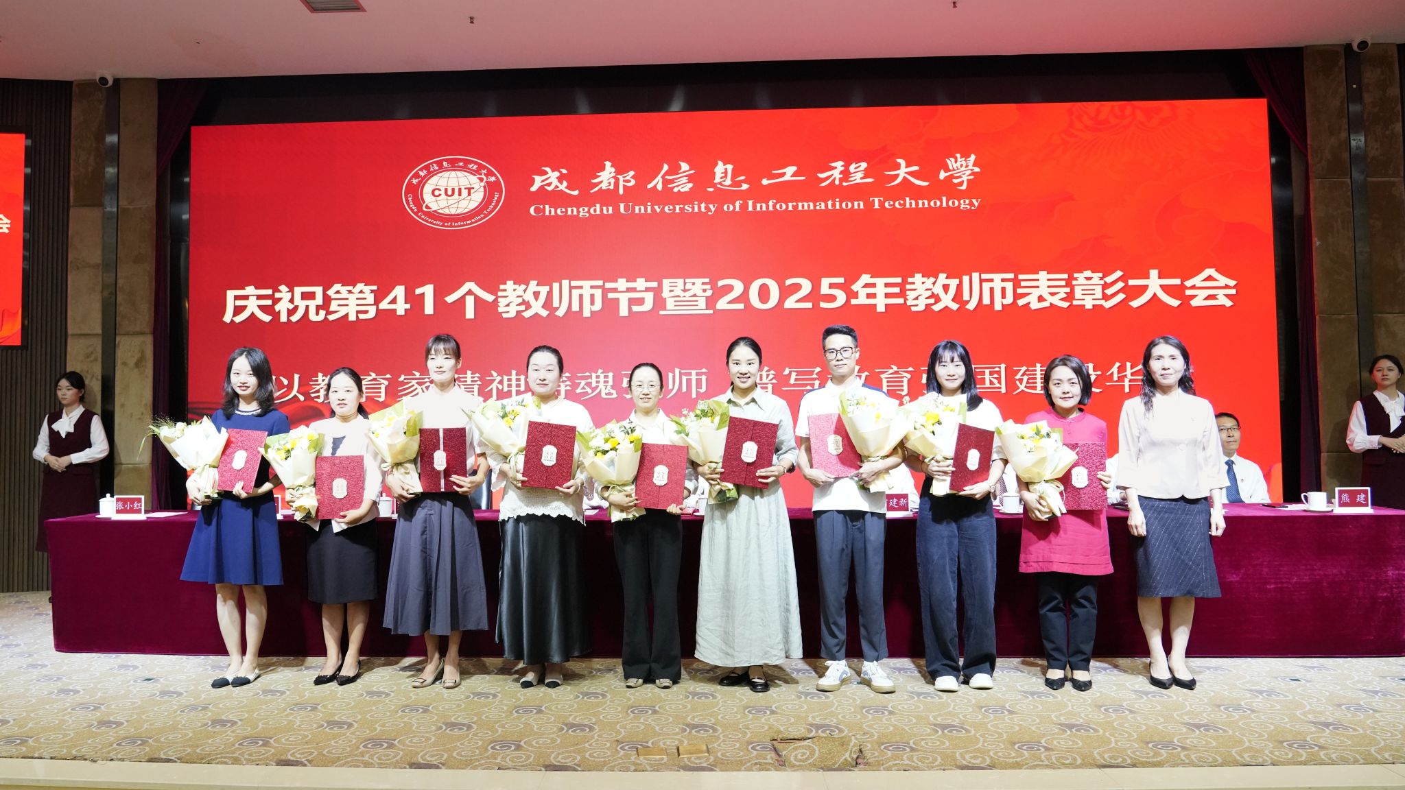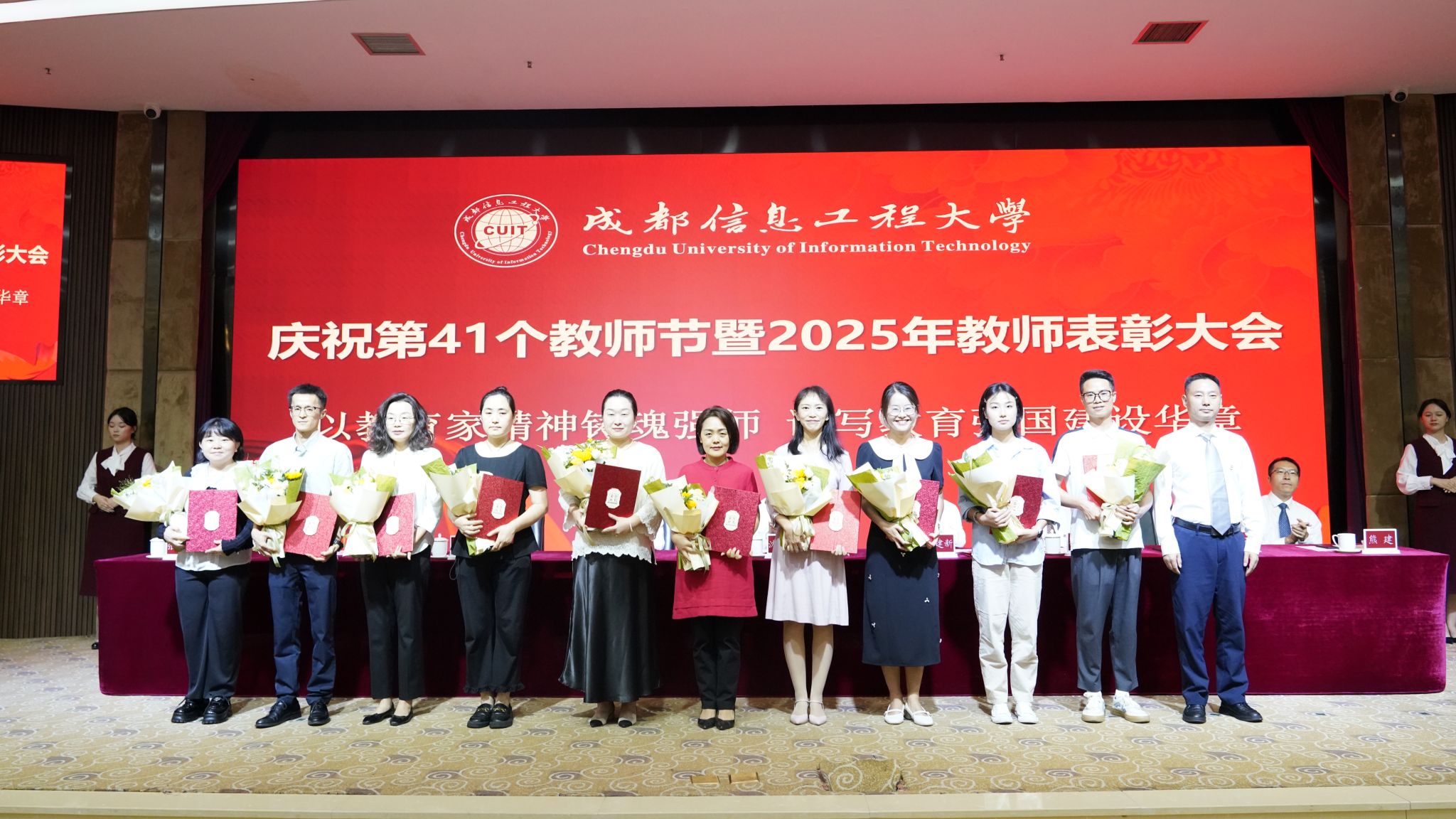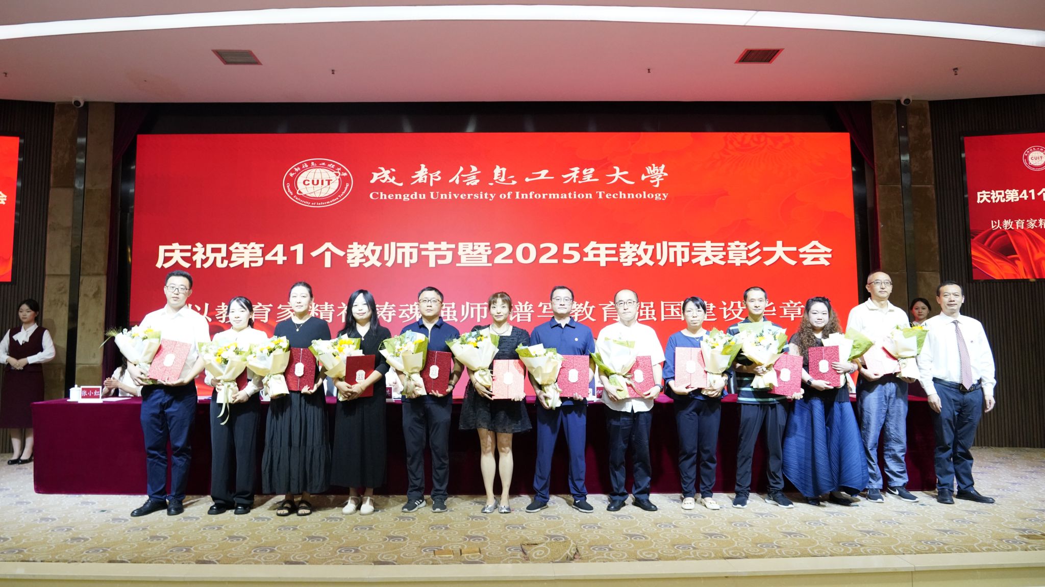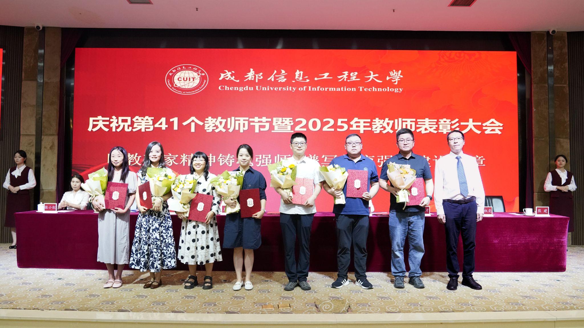 学校对在各个领域取得突出成绩、为学校发展作出卓越贡献的优秀教师予以表彰,学校校长何建新宣读了表彰文件。张葛祥、李勇两位教授遴选为享受国务院特殊津贴专家;大气科学学院院长华维教授获“全国气象教学名师”称号;大气科学学院葛非教授获国家级人才称号;唐婷婷、李勇、陈浩3名教师获省级人才称号;赵长名老师获成都市人才称号。学校启动荣誉体系,教务处、科技处获“管理服务先进集体”称号;自动化学院、人工智能学院获“就业工作先进集体”称号;昌燕等5名教师获“研究生优秀指导教师”称号;郜东瑞等8名教师获“成信科技英才奖”;于尧等25名教师获“管理服务先进个人”称号;侯倩等10名教师获“就业工作先进个人”称号;田媛等10名辅导员获我校“十佳辅导员”称号。白杨、郭俊等10名教师获学校“青年教师教学奖”。此外,还有数10名教师在“第九届全国高等院校英语教师教学基本功大赛”“第十二届电工电子基础课程实验教学案例设计竞赛”等教学竞赛中获国家级、省级奖项。学校还对本年度获得“光荣从教30年”荣誉称号和“光荣退休奉献奖”的退休教师予以表彰。
