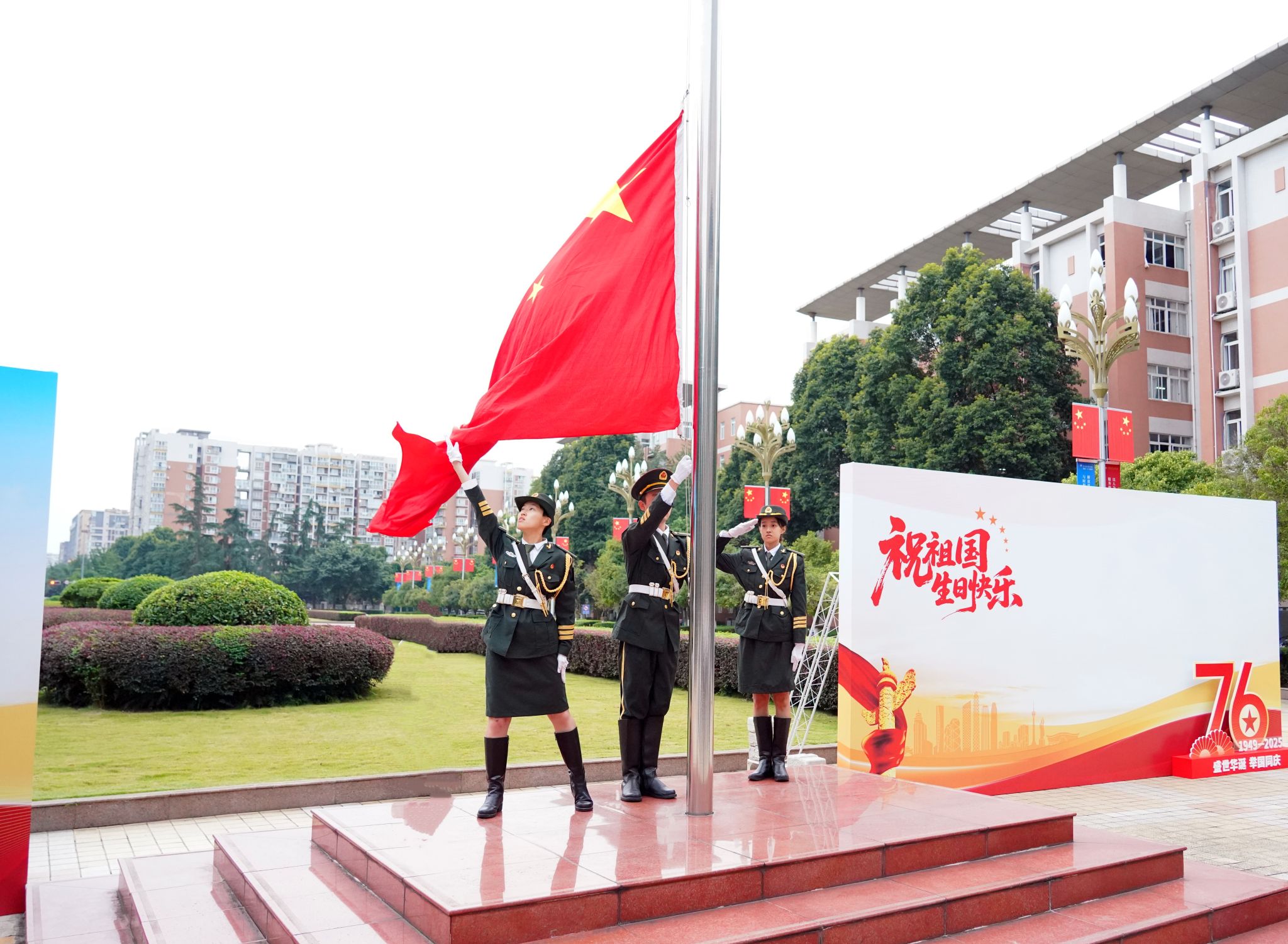 礼赞祖国七十六华诞,青春共筑新时代。学校举行升国旗仪式,既是对伟大祖国表达崇敬之情和美好祝愿,也是一堂生动的爱国主义教育大思政课,进一步激发了师生将爱党之情、报国之志、荣校之心融入日常的决心。全校师生将进一步振奋精神,踔厉奋发,锚定建成教育强国战略目标,为lejing乐竞·(中国)官方网站发展的崭新篇章挺膺担当、贡献力量。