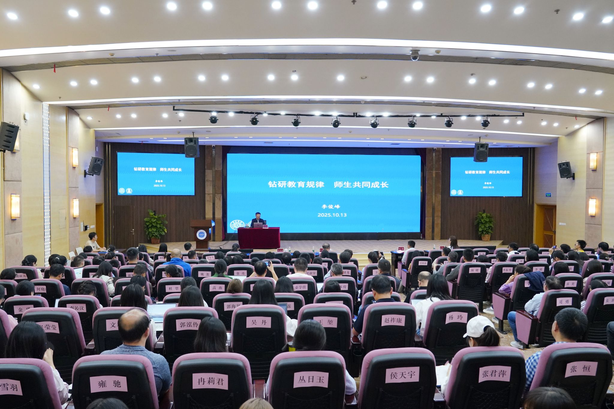 【本网讯】10月14日,清华大学行健书院院长、国家级教学名师李俊峰应邀到校作题为《钻研教育规律 师生共同成长》专题讲座。学校校长何建新,副校长何晋,人事处相关负责人,各学院45岁以下青年教师、学生代表等共计200余人参加讲座。