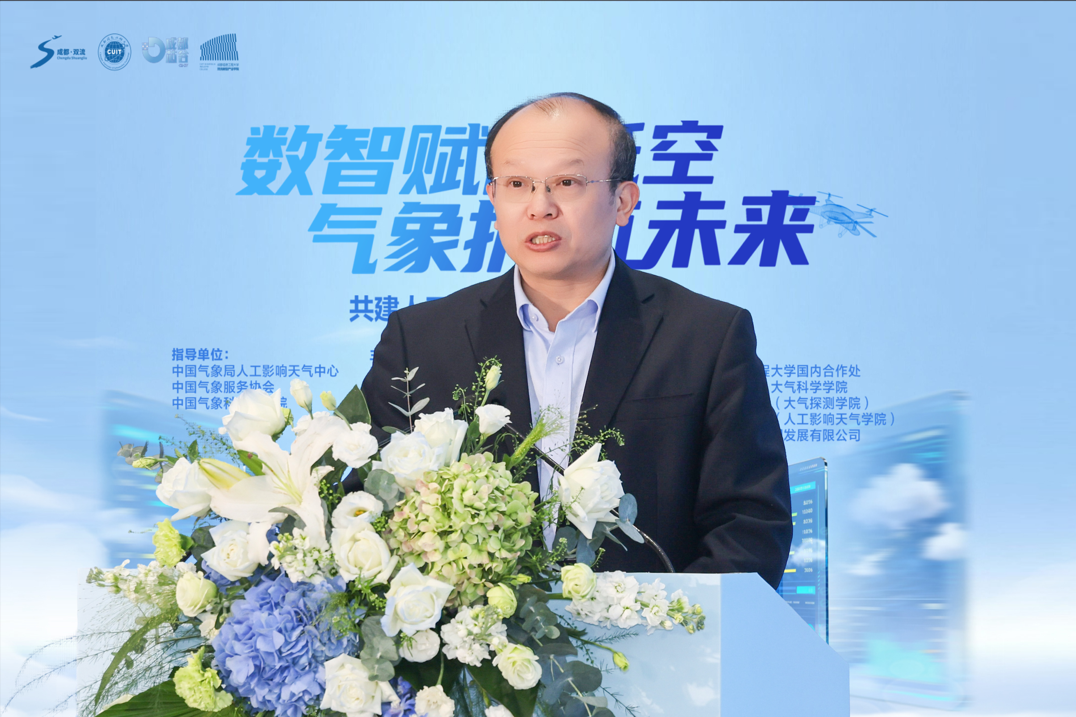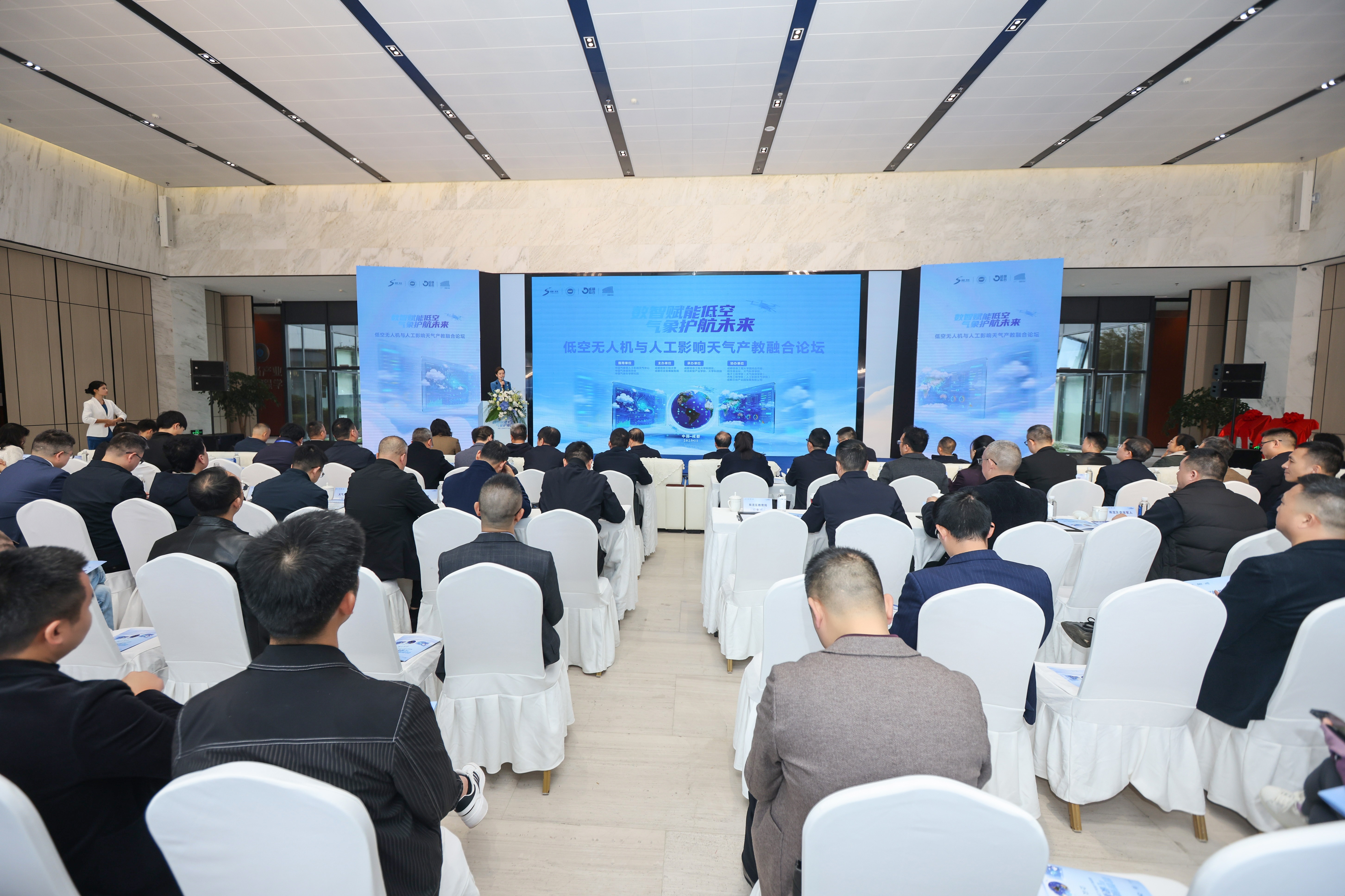 【本网讯】11月10日下午,由学校与成都芯谷发展服务局联合主办的“低空无人机与人工影响天气产教融合论坛”在双流新型产业学院举办。论坛以“数智赋能低空,气象护航未来——共建(成都双流)人工影响天气产业生态集群”为主题,汇聚了来自气象、航空、教育、科技及企业界的众多领导、专家学者与行业代表约150人,共同探讨低空无人机与人工影响天气领域的深度融合与协同发展路径。