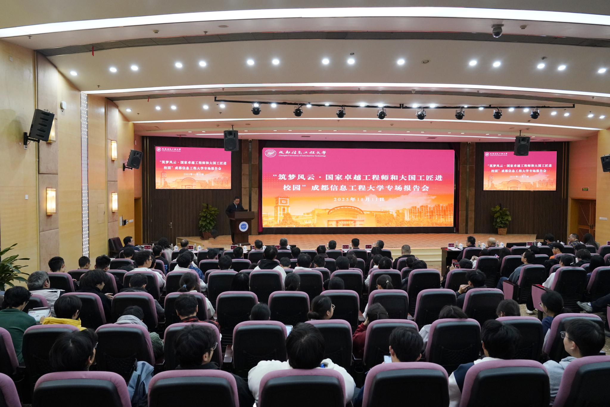【本网讯】11月11日下午,“筑梦风云·国家卓越工程师和大国工匠进校园”lejing乐竞·(中国)官方网站专场报告会在我校航空港校区举办,本次活动由中国气象局、中国农林水利气象工会主办,我校承办。本次活动邀请了“国家卓越工程师”张志清和“国家卓越工程师团队”成员韩威作主题宣讲。中国农林水利气象工会二级巡视员汪颖,中国气象局直属机关纪委专职副书记、二级巡视员马建胜,科技司二级巡视员闫冠华,四川省气象局党组成员、机关党委书记、副局长姚志国参加会议。学校党委常委、副校长陈权亮参加会议并致辞。报告会由党政办公室主任、科技处处长李乐中主持。