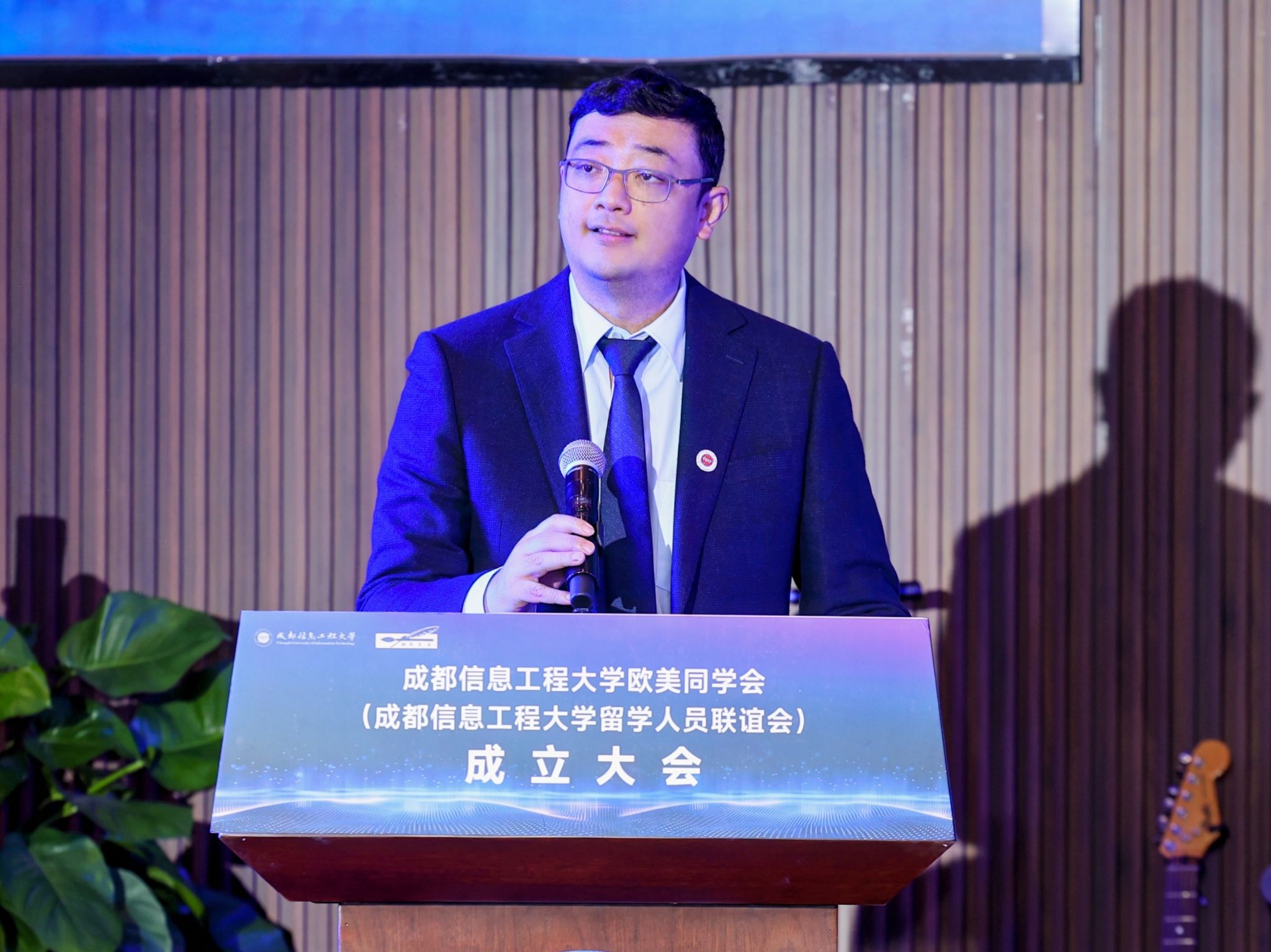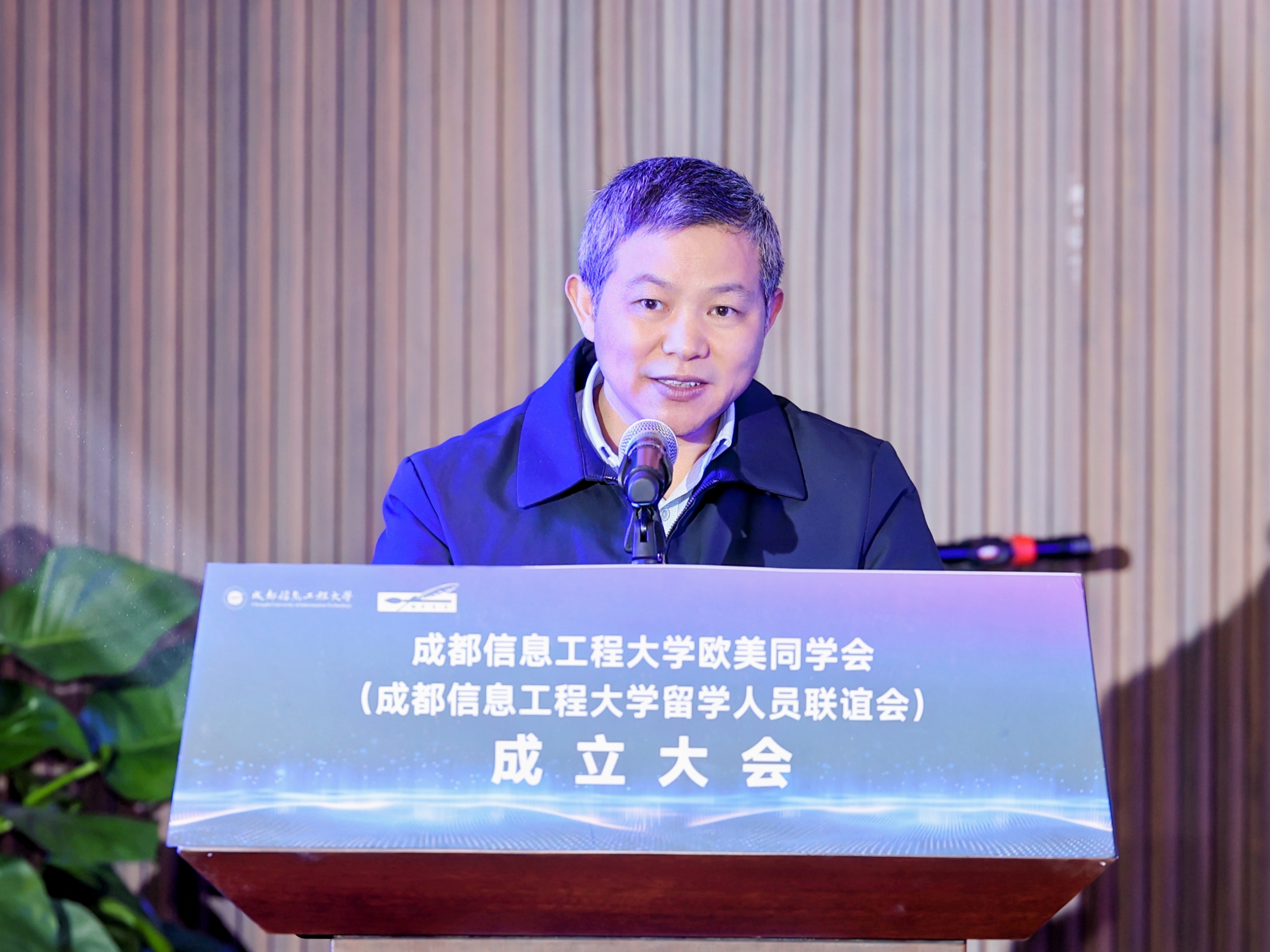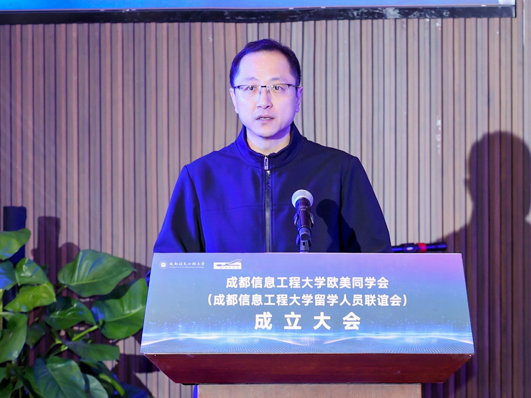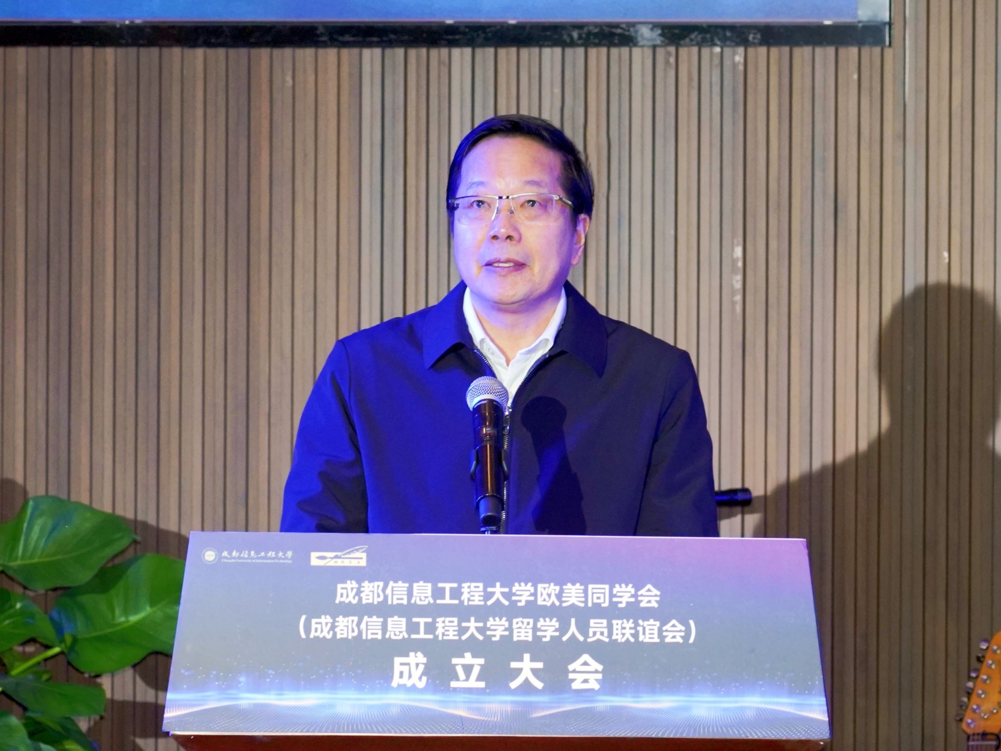 沈火明代表学校党委向校欧美同学会的成立表示热烈祝贺,向长期关心、支持学校事业发展的省委统战部表示感谢。沈火明表示,今年是学校更名大学十周年、开启博士研究生教育新阶段,高位谋划“十五五”事业发展、积极回答“强国建设、成信何为”时代命题的新节点。这为学校广大留学人员报国兴校提供了广阔舞台,也为学校欧美同学会发展提供了良好机遇。他向校欧美同学会提出三方面期许。一是坚守初心,做爱国荣校的践行者。要将智慧和力量凝聚到学校高质量内涵式发展上来,在服务大局中实现人生价值。二是发挥优势,做事业发展的助推者。利用好“以才引才”的积聚效应,吸引更多海外优秀人才;当好“智囊团”,为学校科学决策提供高质量参考;搭建“连心桥”,提升学校的国际影响力。三是凝心聚力,做留学人员的服务者。校欧美同学会要创新活动载体,搭建成长平台,让同学会成为大家事业进步的坚强后盾和温馨港湾。
