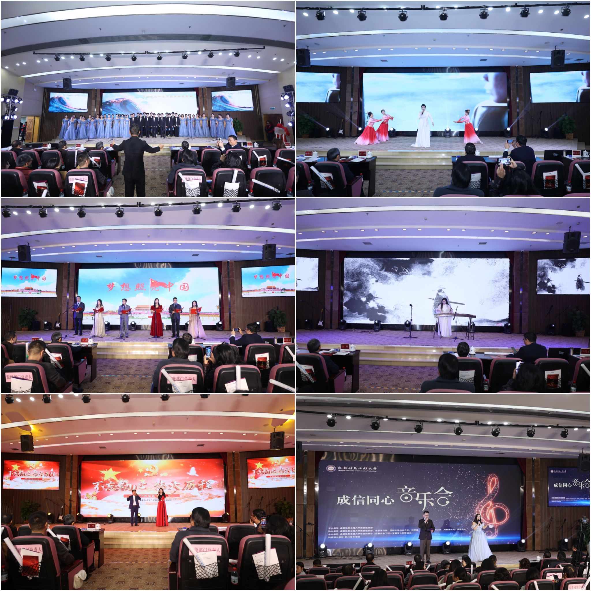 音乐会特邀四川音乐学院的13位艺术家,与学校海归教师、民主党派教师、留学生代表及大学生艺术团学生共同倾情演绎。演出精选了来自中外不同风格和演艺形式的十个优秀作品,融合弦乐演奏、民乐演奏、独唱、合唱、音乐串烧、配乐朗诵等形式,将精湛的演艺技术与丰富的艺术表现高度融合。