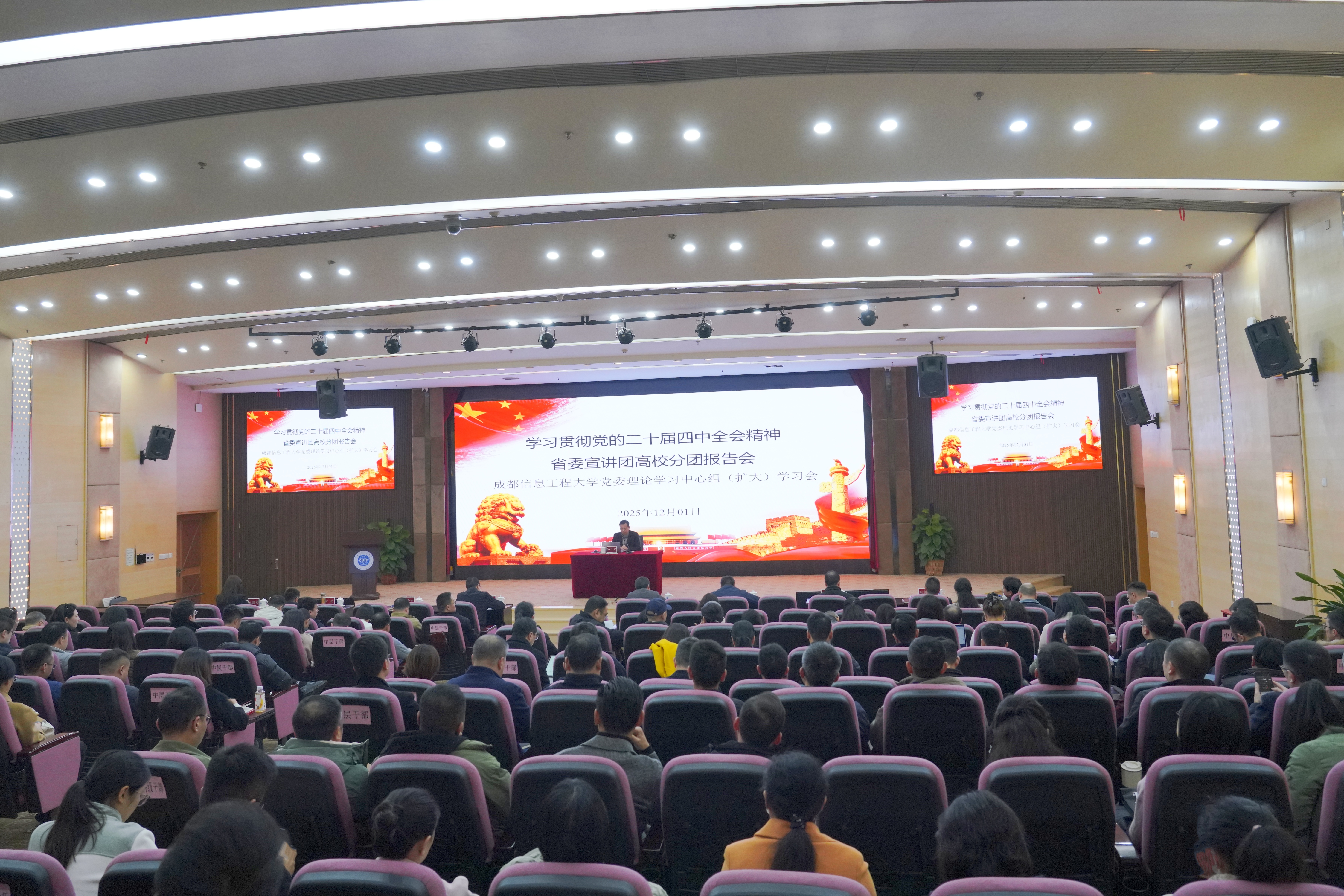 【本网讯】为深入学习贯彻党的二十届四中全会精神,根据省委统一部署,12月1日下午,学校在航空港校区国际会议厅举行党委理论学习中心组(扩大)专题学习会暨学习贯彻党的二十届四中全会精神省委宣讲团高校分团报告会。省委宣讲团成员、中共四川省委党校(四川行政学院)副校(院)长裴泽庆教授作宣讲报告。学校党委副书记杨奇才主持报告会。全体在校校领导,全体中层干部,科级干部、团干部、统战团体、马克思主义学院教师、辅导员以及学生代表220余人参加。