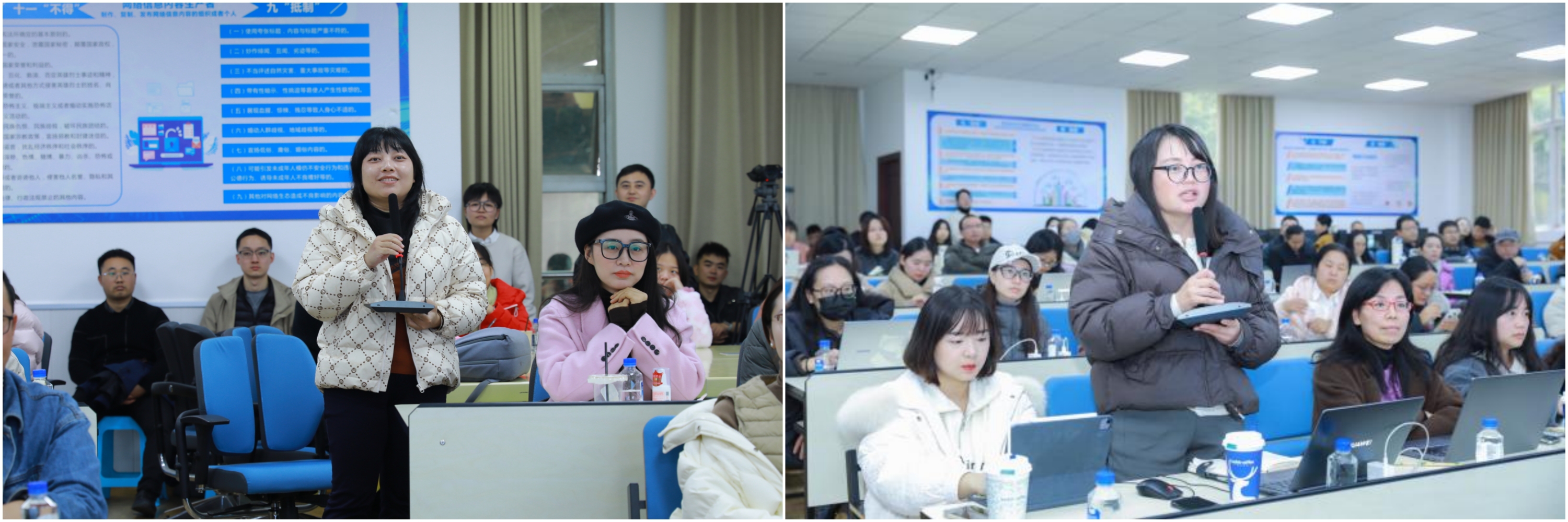 在专家报告环节,西南交通大学刘娟副教授、成都中医药大学王世宇教授、电子科技大学吴涛副教授、成都大学朱盈盈教授分别作主题报告,涉及“智慧教学实践探索”“AI在课程中的深度应用”“AI革新教学”“课程的智慧教学进阶”等内容。与会教师围绕课程实践痛点、技术应用难点等问题进行了深入交流与探讨。