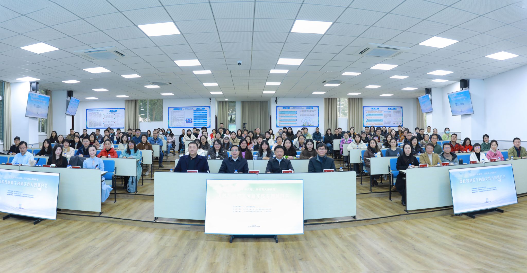【本网讯】12月11日下午,由四川省高等教育学会指导,学校联合四川智慧教学实践者联盟主办,智慧树网承办的高校智慧教学创新实践专题研讨会在学校航空港校区第三教学楼3102教室召开。学校党委书记沈火明、副校长何晋,省内120余名高校教师参加了本次会议。会议以“智启教学新实践,共筑育人新典范”为主题,聚焦AI技术与教育教学深度融合的实践路径与创新范式。