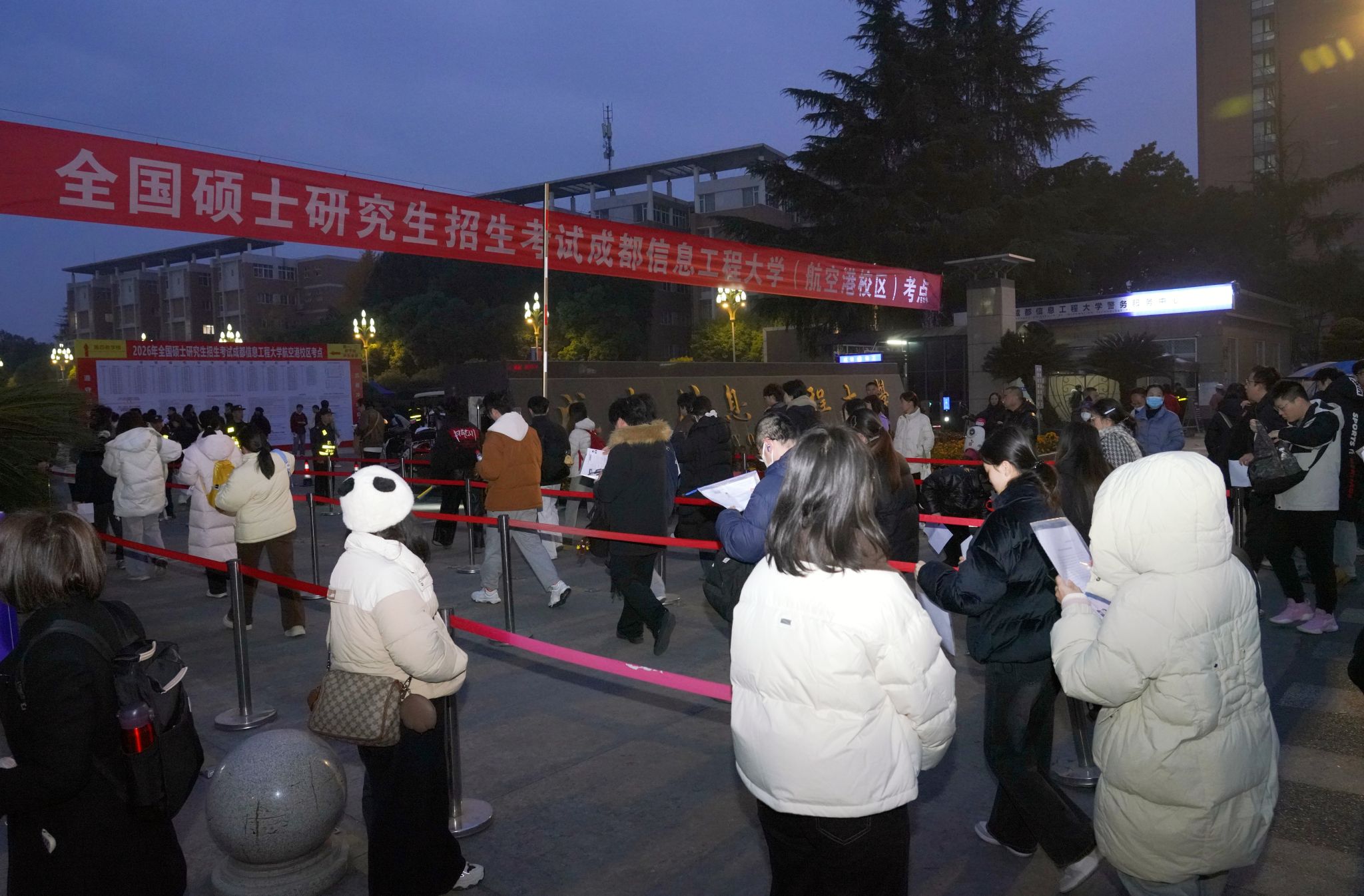 考试期间,考点主考、学校校长何建新,副主考、学校副校长罗小蓉、陈权亮分别带领相关职能部门负责人,对两校区考场开展巡查。他们深入考务指挥中心、考务组、考场等关键区域,检查、指导研考组织实施工作,强调各单位要压实责任、紧密协作,全力确保考试平稳顺利、公平公正进行。