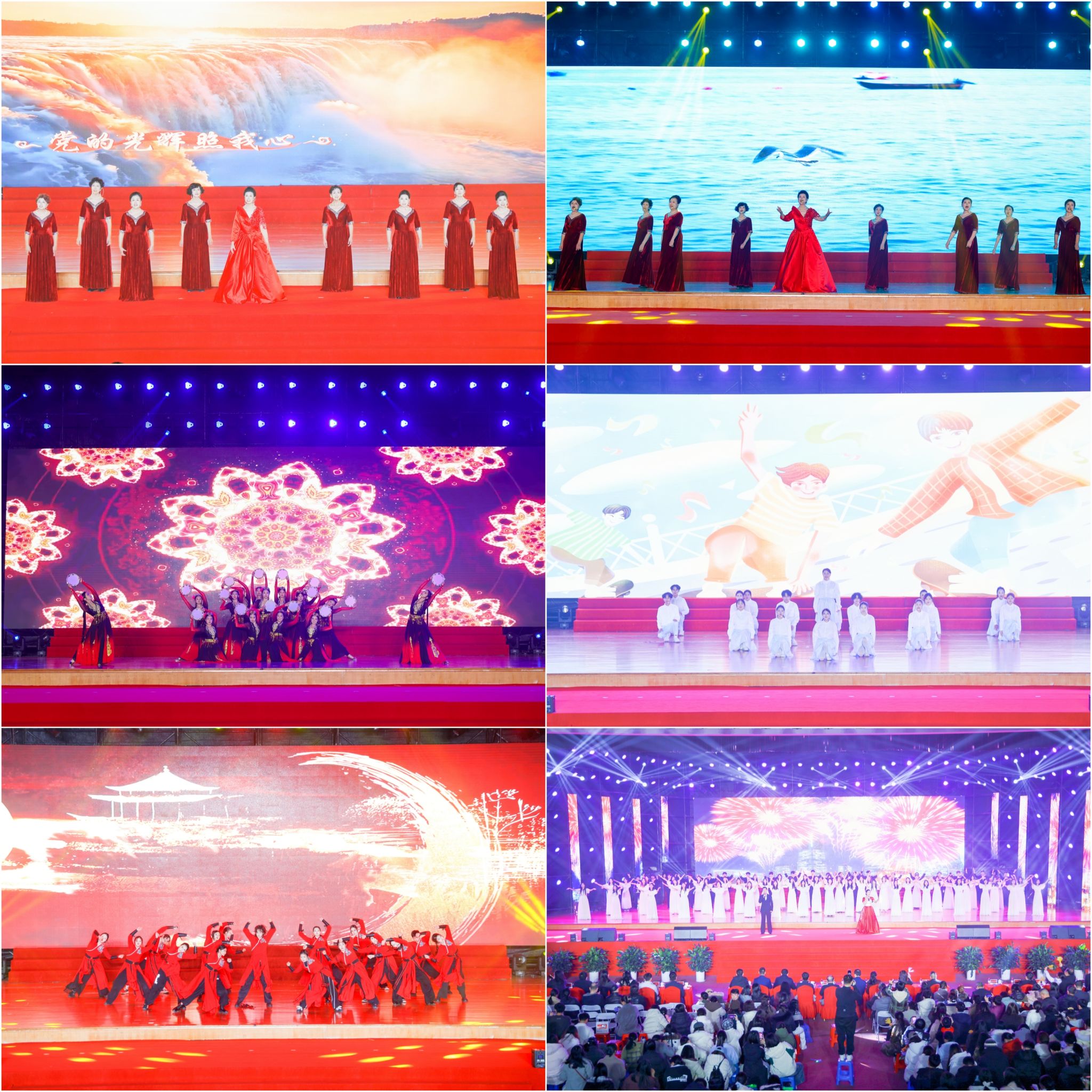 在第三篇章“新程启航”环节,离退休工作处教师合唱团带来的《唱支山歌给党听》《亲爱的你啊》传递出岁月沉淀的温暖与赤诚;民族舞《鼓声响起的地方》展现浓郁民族风情;情景诗朗诵《青春里的诗与歌》道尽少年意气;国风流行舞《岁立青云》融合经典与时尚,尽显青春风采。
